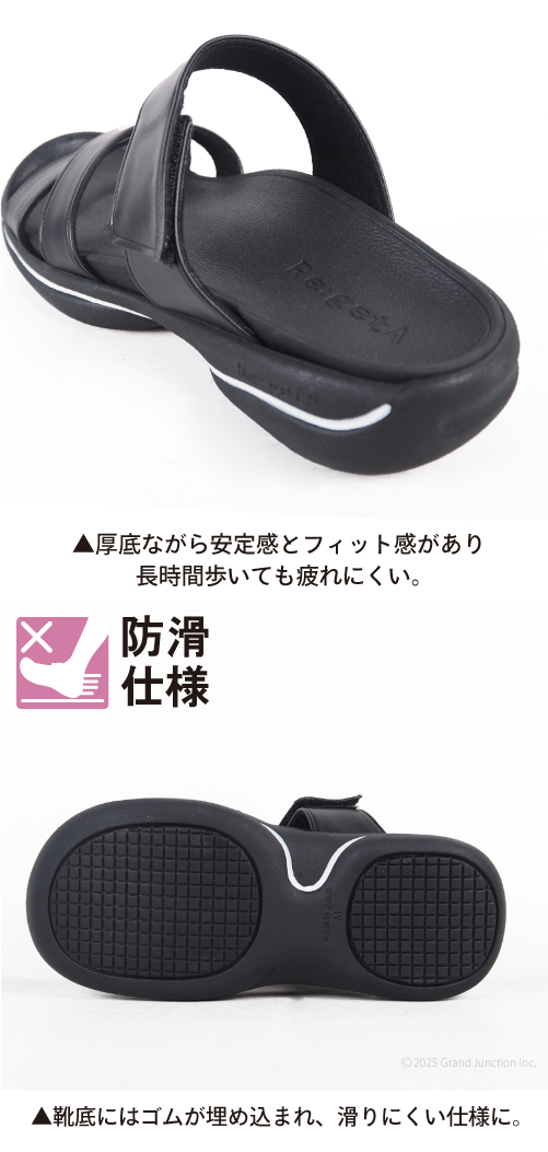 かかとには軽量化と衝撃吸収に優れたEVA素材を埋め込み、靴底には防滑ゴムを埋め込み滑りにくい仕様に!