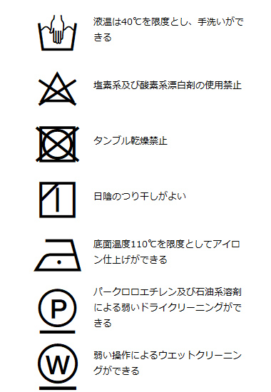 | 洗濯表記 | 詳しくはこちら⇒ |