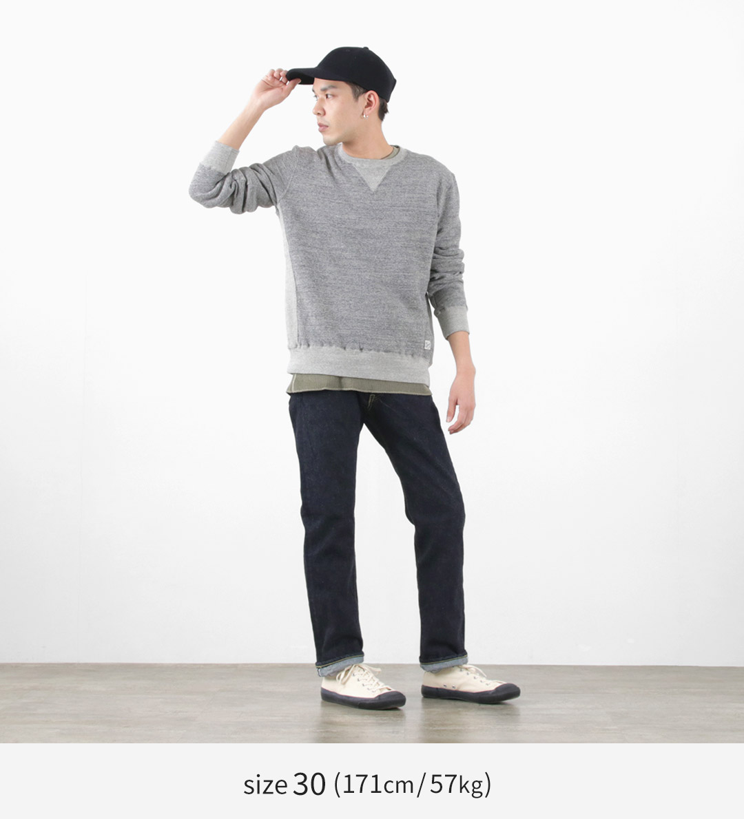 | ●スタッフ(165cm/52kg) 体型:痩せ型 着用:サイズ29 サイズ29で丁度のサイズ感です。ウエストに少しゆとりがありますが、ベルトを必要とする程ではありませんでした。すっきりとしたシルエットですが、ヒップ腿周りに少しゆとりがあって楽な穿き心地です。ロールアップもアリですが、裾はジャストで穿くなら裾上げが良いですね。 |