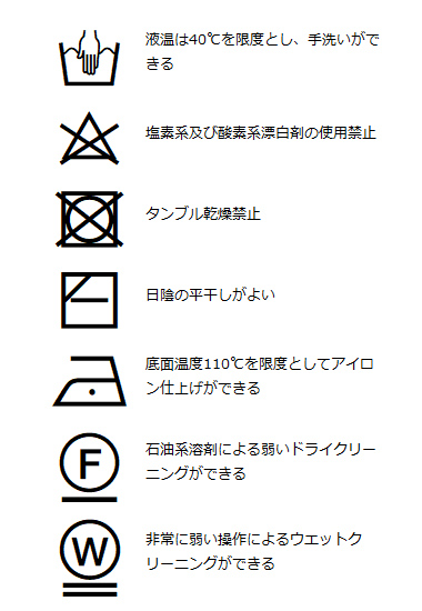 | 洗濯表記 | 詳しくはこちら⇒ |