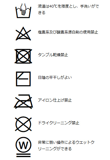 | 洗濯表記 | 詳しくはこちら⇒ |