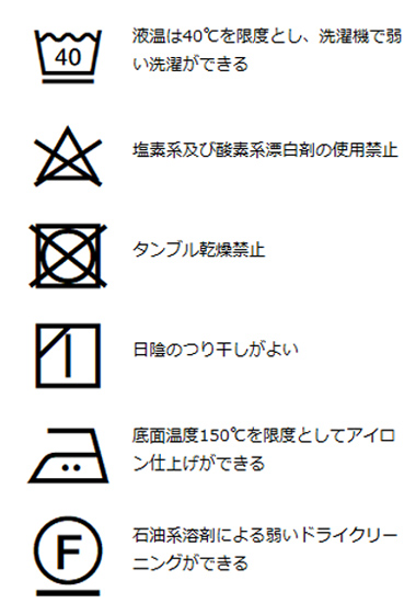 | 洗濯表記 | 詳しくはこちら⇒ |