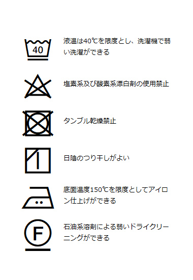 | 洗濯表記 | 詳しくはこちら⇒ |