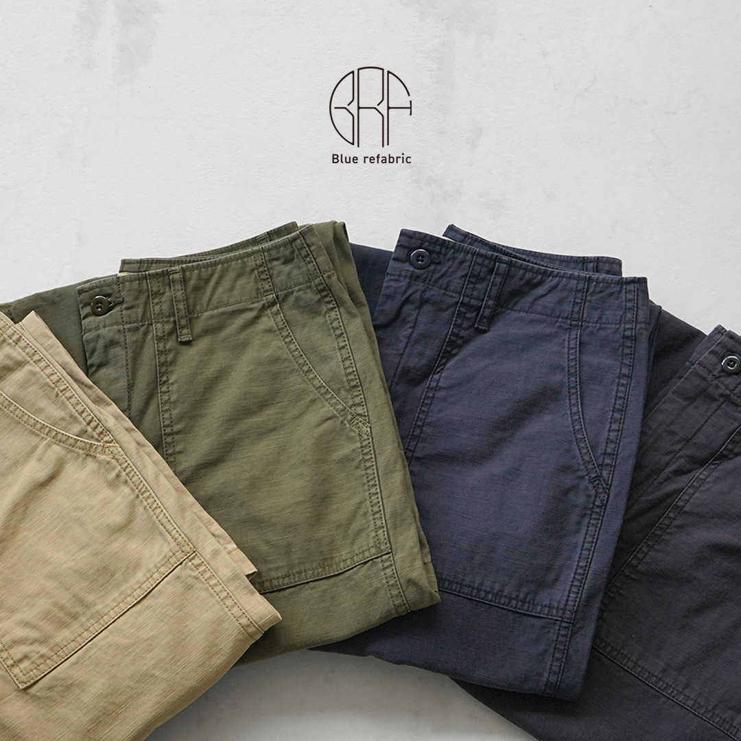 ジャパンブルージーンズの提携工場を中心に生産しています。 ブルーリファブリックは「Blue=日本のデニム」と「Refabric=Republic(共和国)とFabric(生地)」を掛け合わせた造語。「ブルー共和国」というイメージのもと、日本が誇る生地文化を大切にしながら、着る人の個性を引き立てるウェアを提案します。