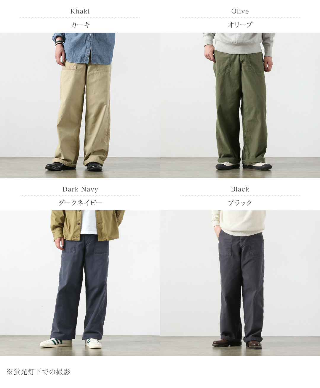 ランス軍の「M47」カーゴパンツ前期型を採用したワイドストレートシルエットは、ゆったりとしたフィット感が特徴。
