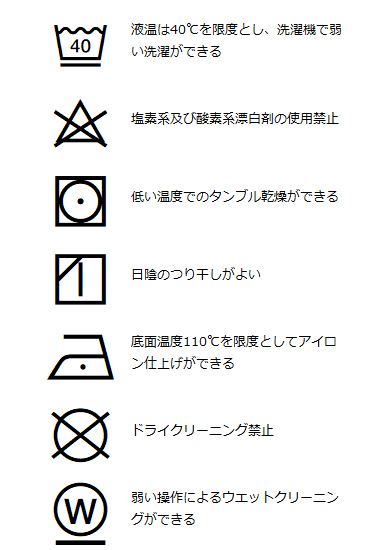 | 洗濯表記 | 詳しくはこちら⇒ |