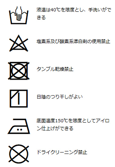 | 洗濯表記 | 詳しくはこちら⇒ |