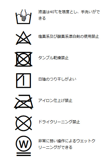 | 洗濯表記 | 詳しくはこちら⇒ |
