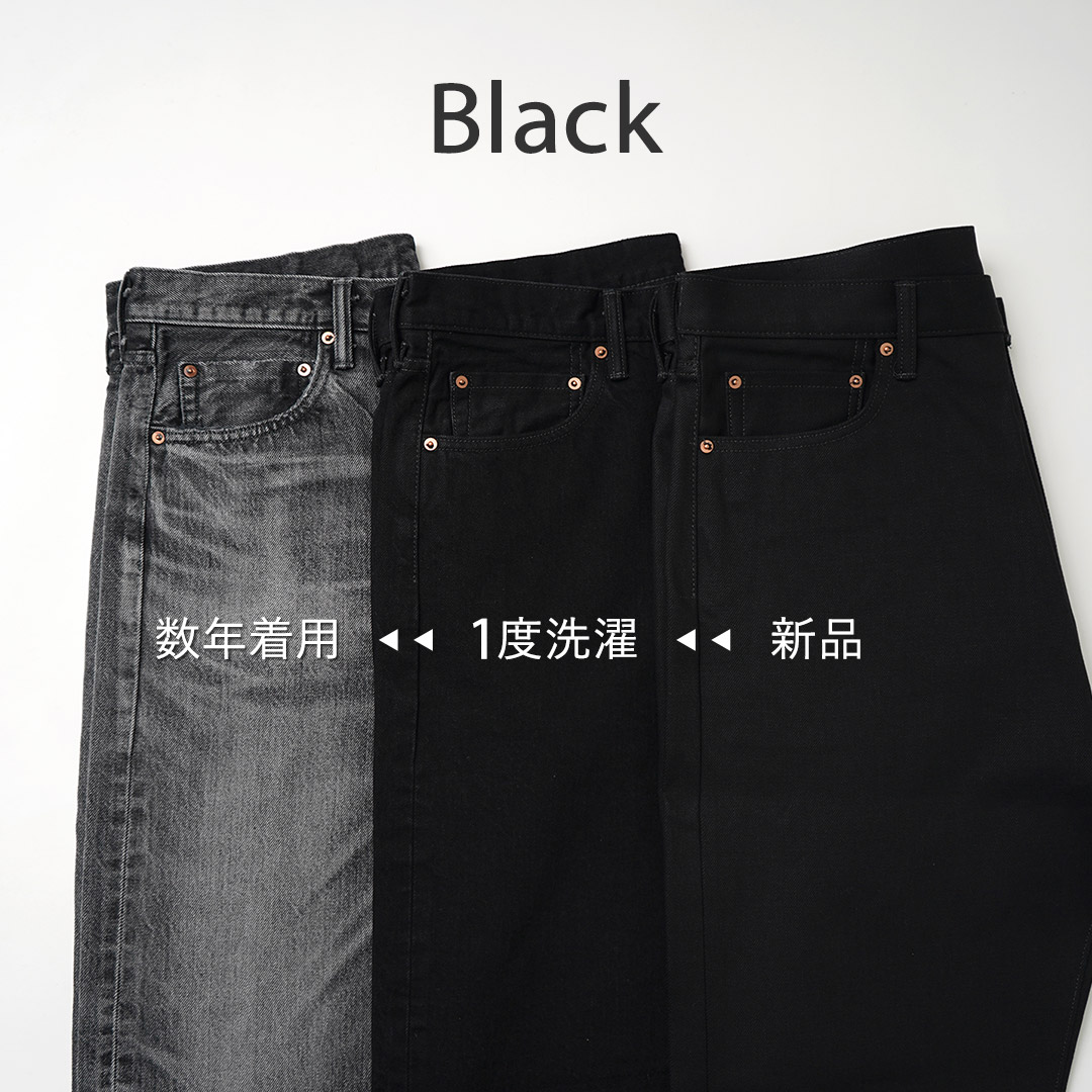 ブラックは、糊がついている新品の状態だとやや薄めですが、1度洗濯していただくと糊が落ち、濃いブラックになります。