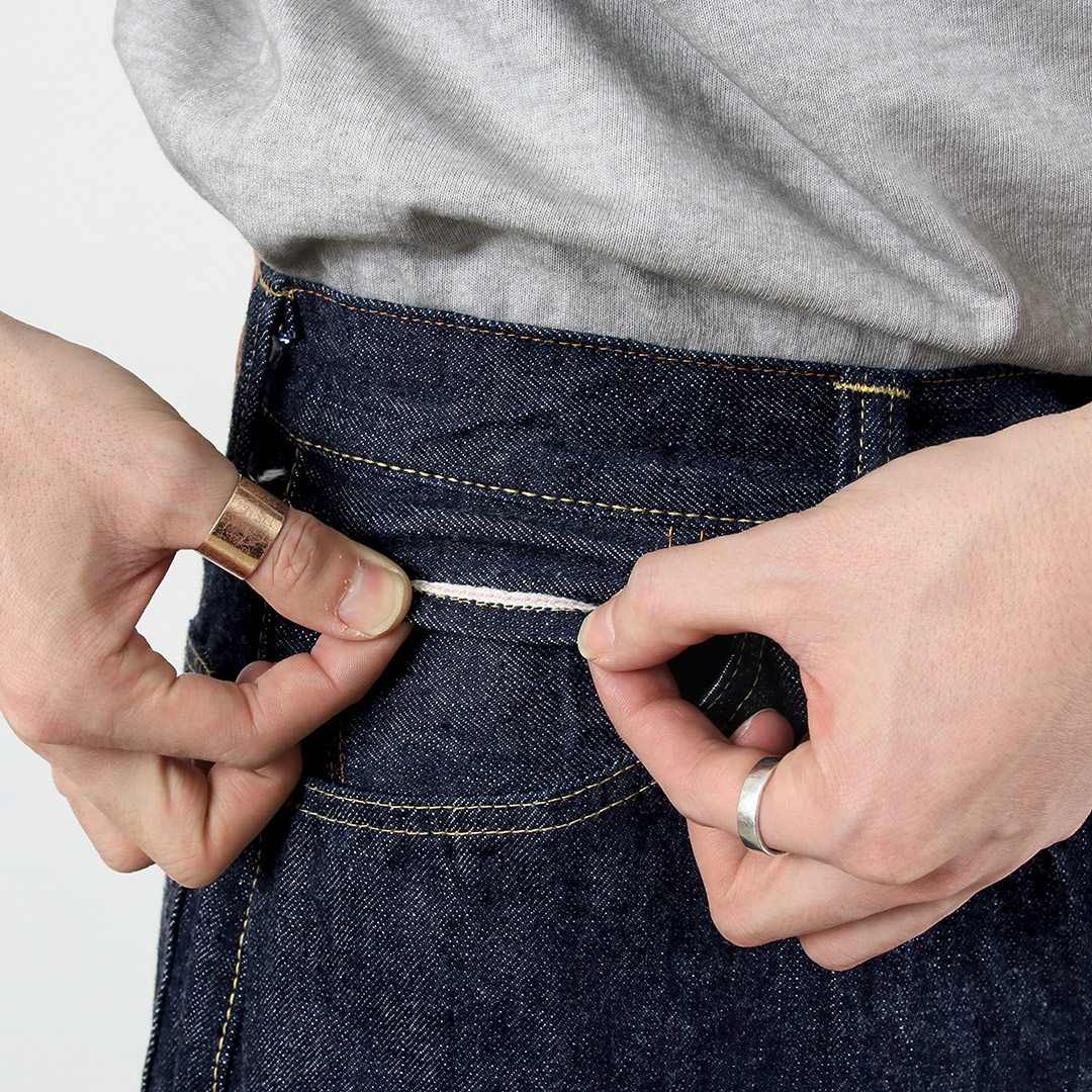 紡績、染色、織り、縫製の全工程にこだわってヴィンテージデニムを再現。経糸7番×緯糸7番の未熟な紡績のムラ糸を使用した13.5オンスセルビッジデニムは、奥行きのある表情が魅力。