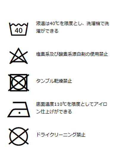 | 洗濯表記 | 詳しくはこちら⇒ |