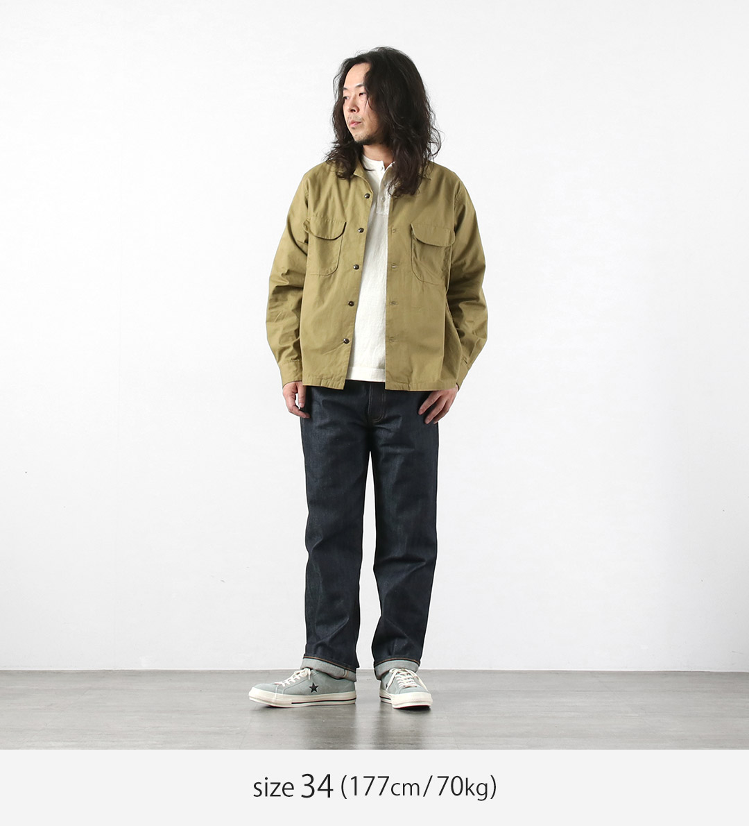 | ●スタッフ 身長・体重:177cm / 73kg 着用サイズ:34 体型タイプ:標準 太ももまわり:標準 丈感:長め ウエストはこぶし1個分ほど入る余裕があります。洗濯後の縮みを考えるとウエストは丁度良くなりそうです。丈は長いので丈直しは洗濯してから検討するのがオススメです。 |