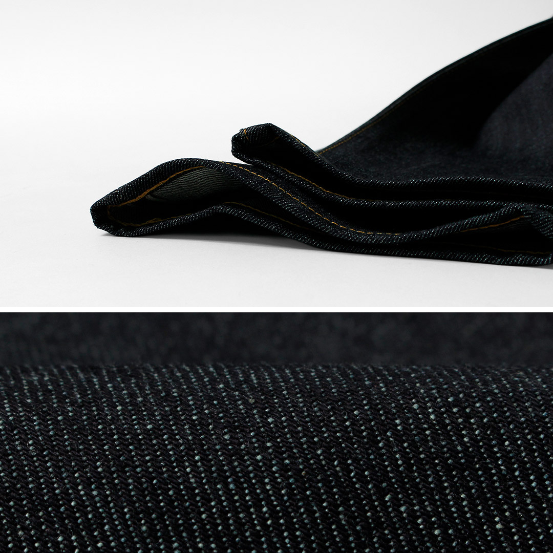 カイハラ社製の日本製セルビッジデニムを採用。ヴィンテージ(旧式)のシャトル織機で織り上げられた生地は、デニム特有の凸凹感や表情豊かな風合いが特徴です。穿き込むほどにヴィンテージさながらの表情へと育ちます。