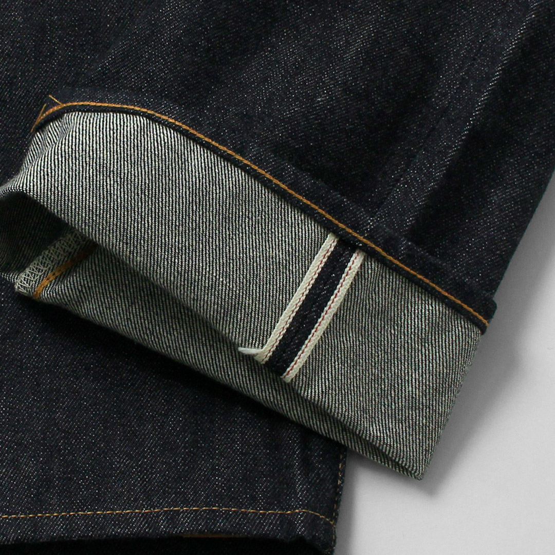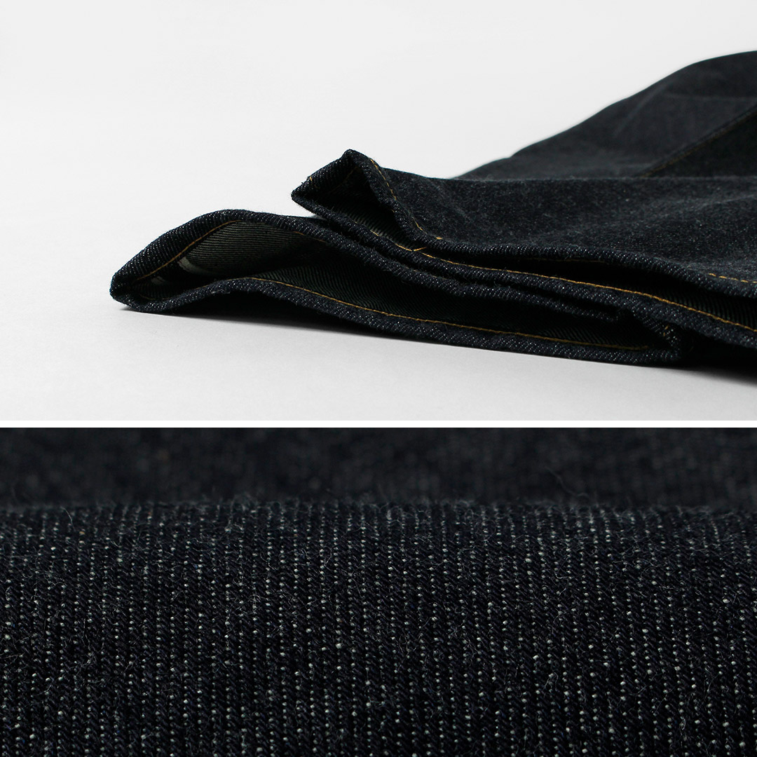 カイハラ社製の日本製セルビッジデニムを採用。ヴィンテージ(旧式)のシャトル織機で織り上げられた生地は、デニム特有の凸凹感や表情豊かな風合いが特徴です。穿き込むほどにヴィンテージさながらの表情へと育ちます。