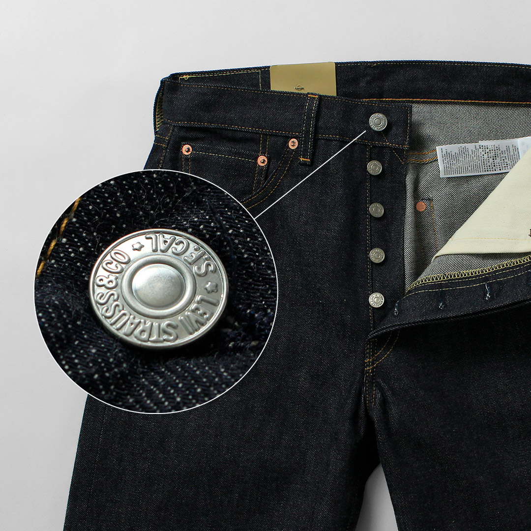 フロントは501を象徴する、ブランド刻印入りのボタンフライ仕様。