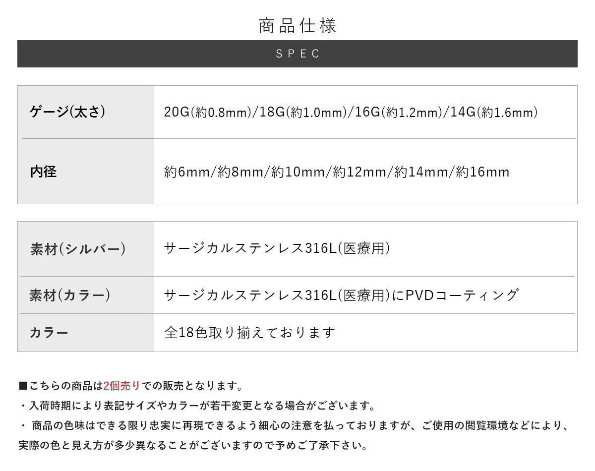 | 金属アレルギーが起こりにくく、人体に優しい素材として注目されているサージカルステンレス。 医療器具にも使用されている素材ですので、安心してお使い頂けます。 ROQUE:ロキのボディピアスは、サージカルステンレス SUS316L(医療用)を使用しています。 ※メッキ等のコーティングにより、金属アレルギーが出てしまう可能性がございます。 ※一部、素材が違うものもありますので、詳しくは商品毎のスペック表をご確認下さい | |