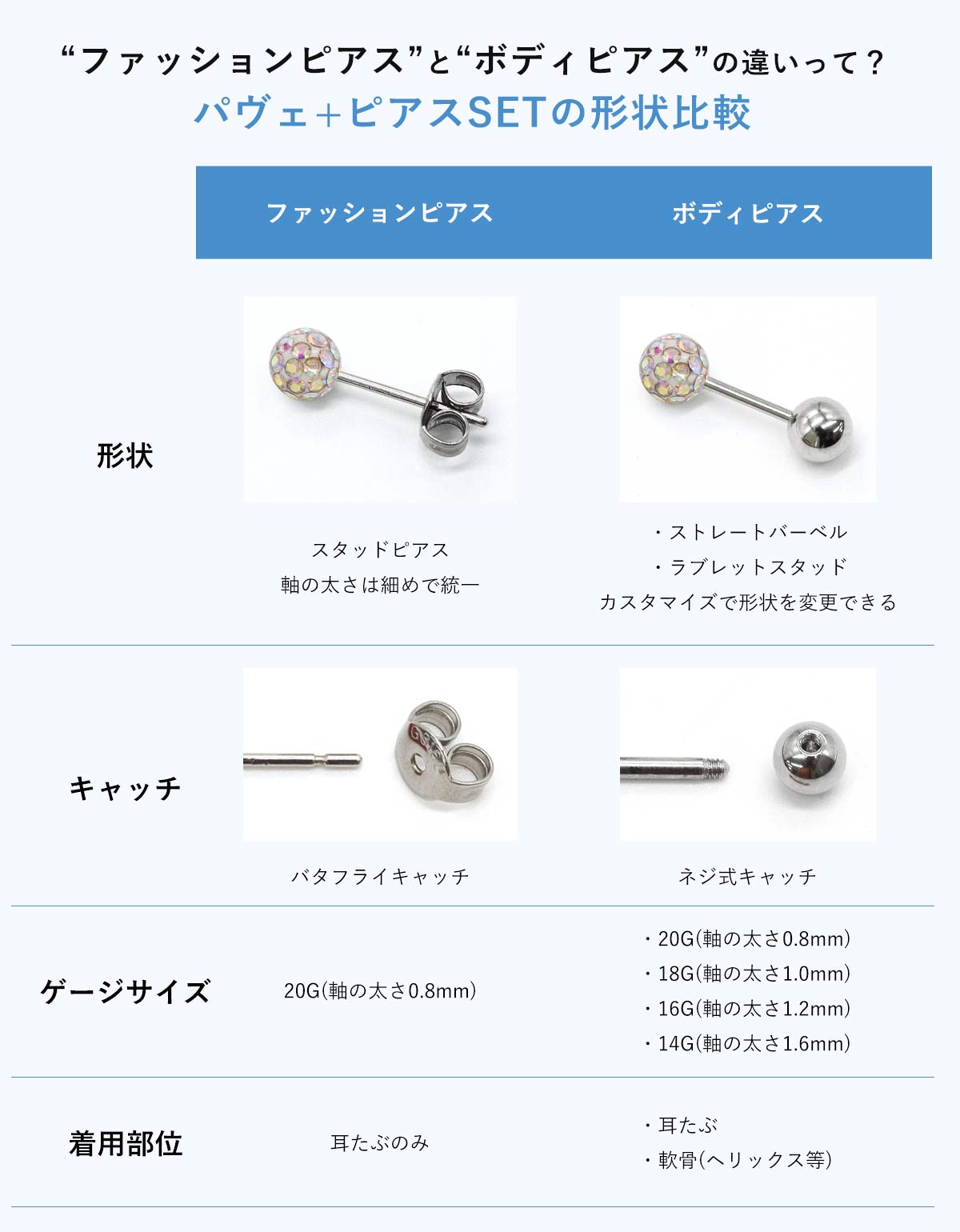 | ピアスホールのケアについて | ピアス用消毒ジェルでトラブル防止! ケアジェルでボディピアス&ピアスホールを清潔に♪ ≫消毒用ジェルはこちらから | ||