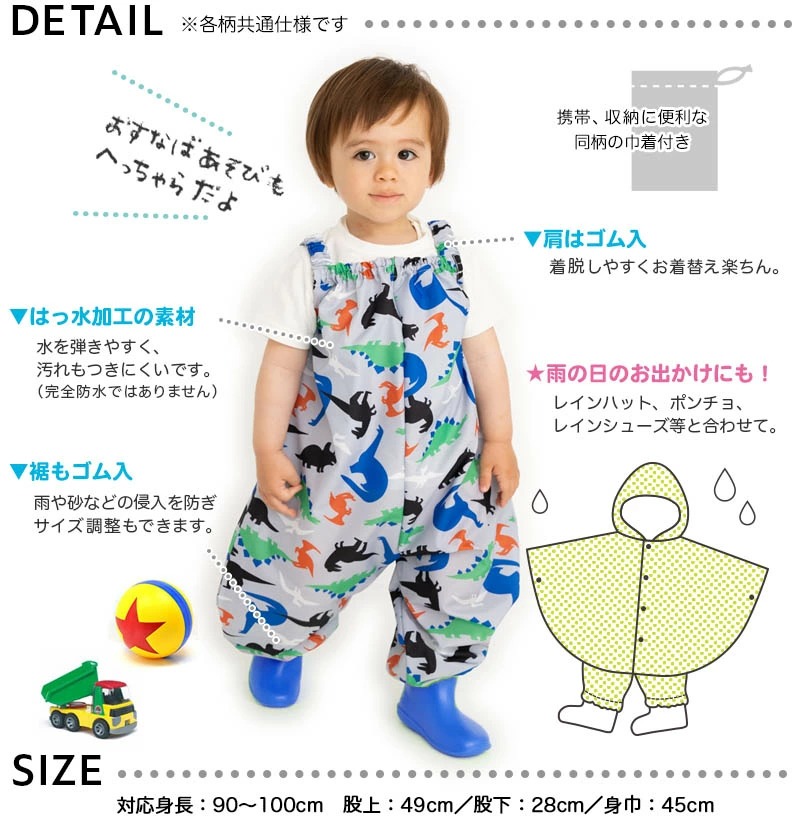 砂場着 遊び着 オーバーオール プレイウェア レインパンツ 90cm 100cm ベビー レイングッズ 水遊び 撥水