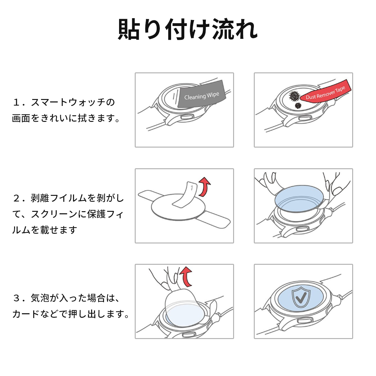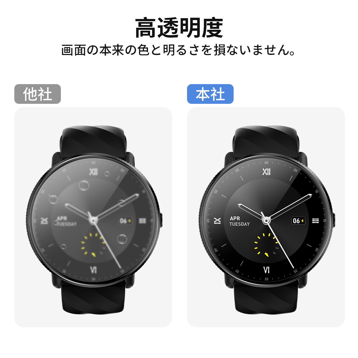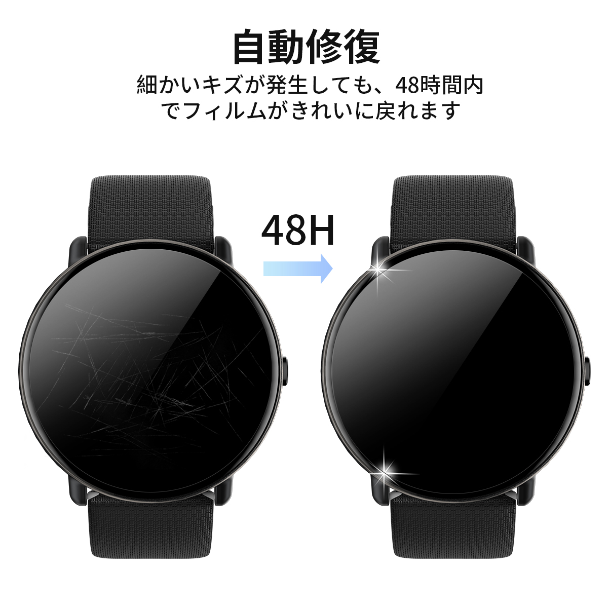 【 対応機種】当店の smart watch通用。一部分スマートウォッチは周辺部が曲面となったラウンド仕様のため、保護フィルムを貼り付けるとき、泡が出る場合がございます。カードなどでゆっくり押し出せます。