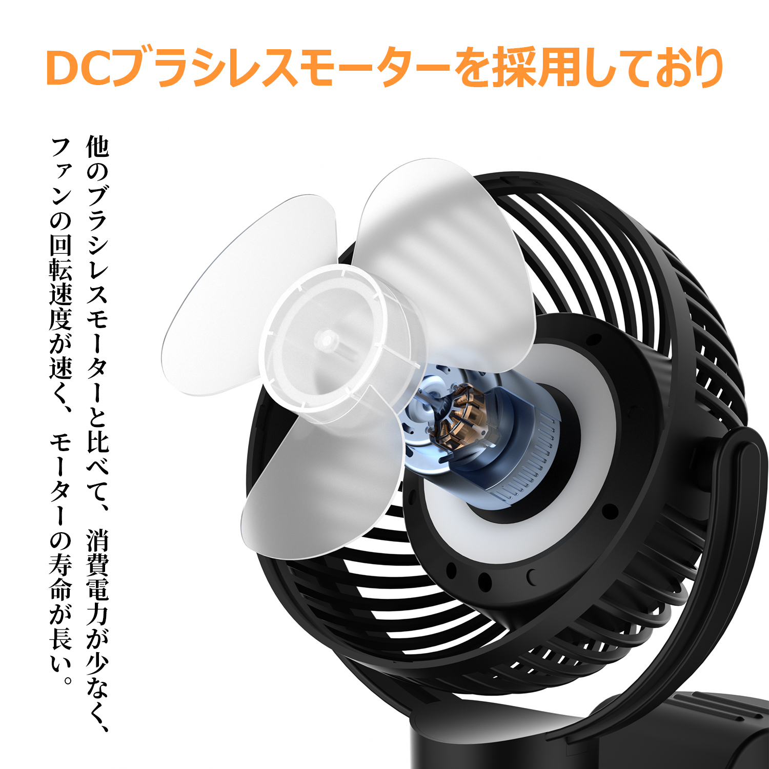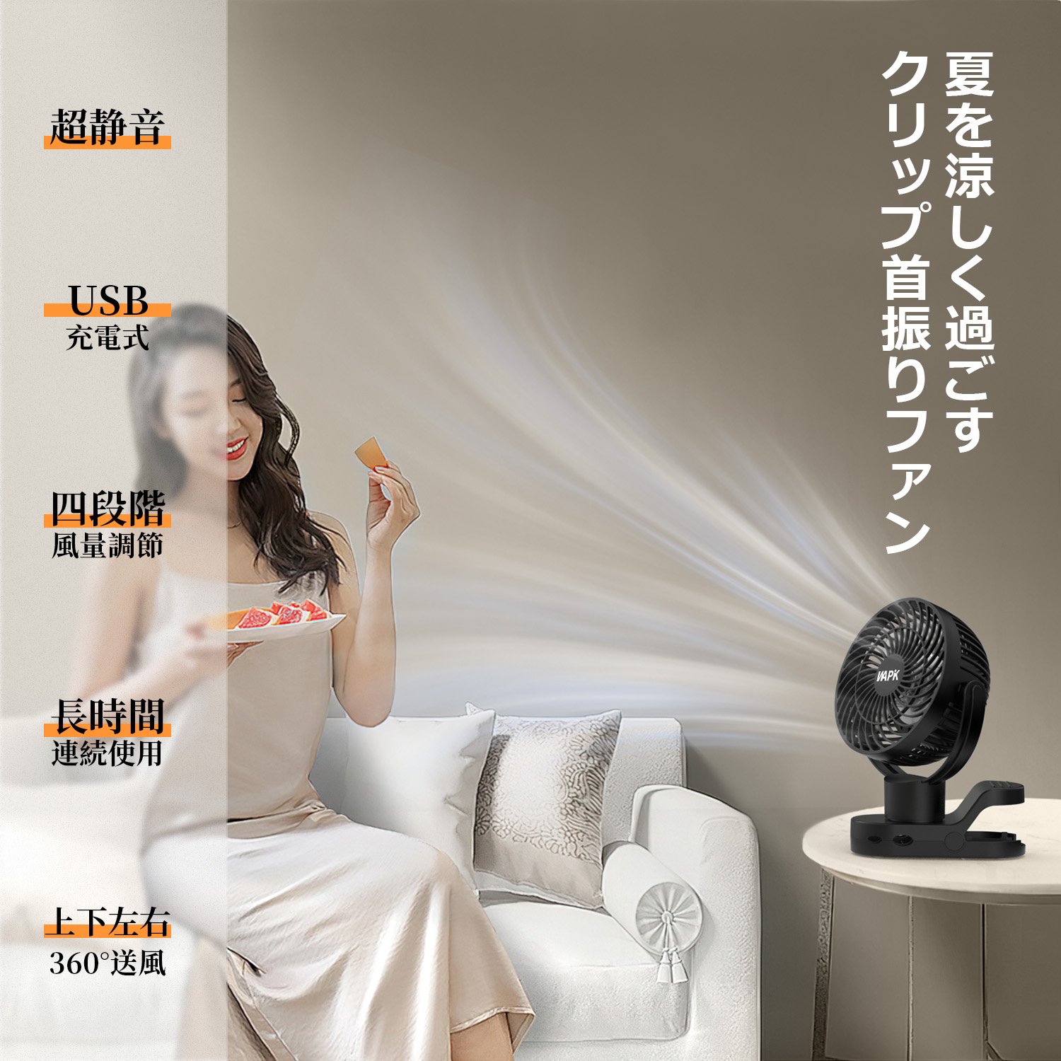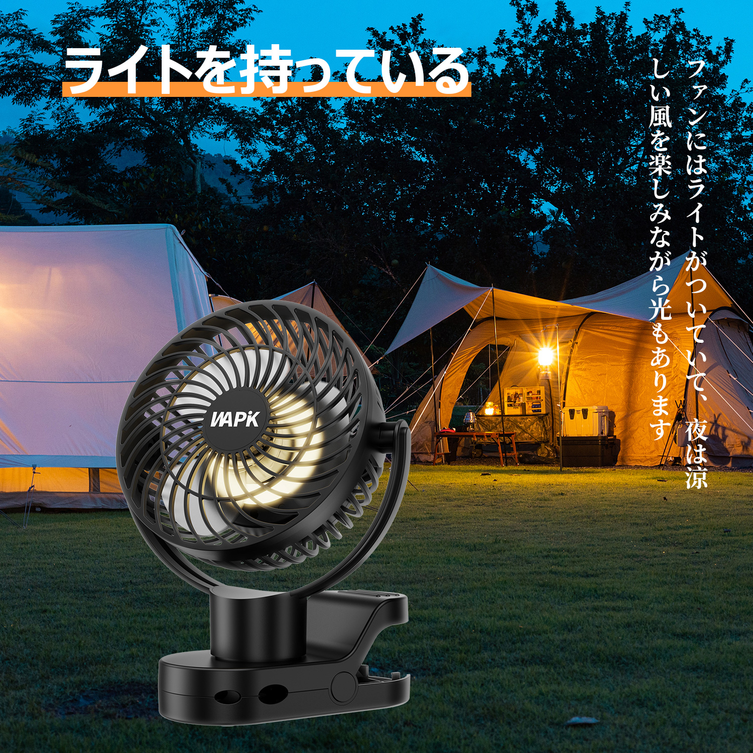 USB扇風機がモバイルバッテリーと合体し、スマホ等の充電にも適用可能となり、また停電や急な電池切れの際にも役立つようになりました。1.本体の台座には滑り止めがあり、卓上式として安定して使えます。2.フックで、テントに直接吊るしても使用可能。3.大型クリップで様々な場所に固定できます。4.コンパクトなデザインを採用し、卓上?吊下げ?クリップの3通りの方式で設置ができます。
