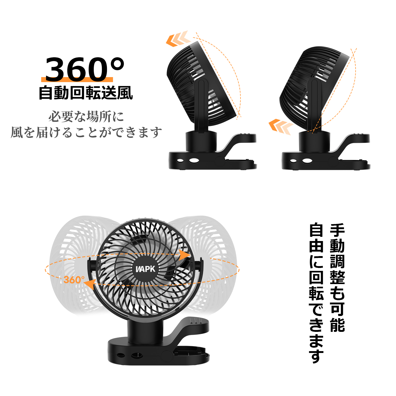 扇風機 卓上扇風機 DCモーター 360°自動回転 リモコン付き 充電式 クリップ型 静音 急速充電 超静音 大風量 熱中症対策 ファン 5000mAh