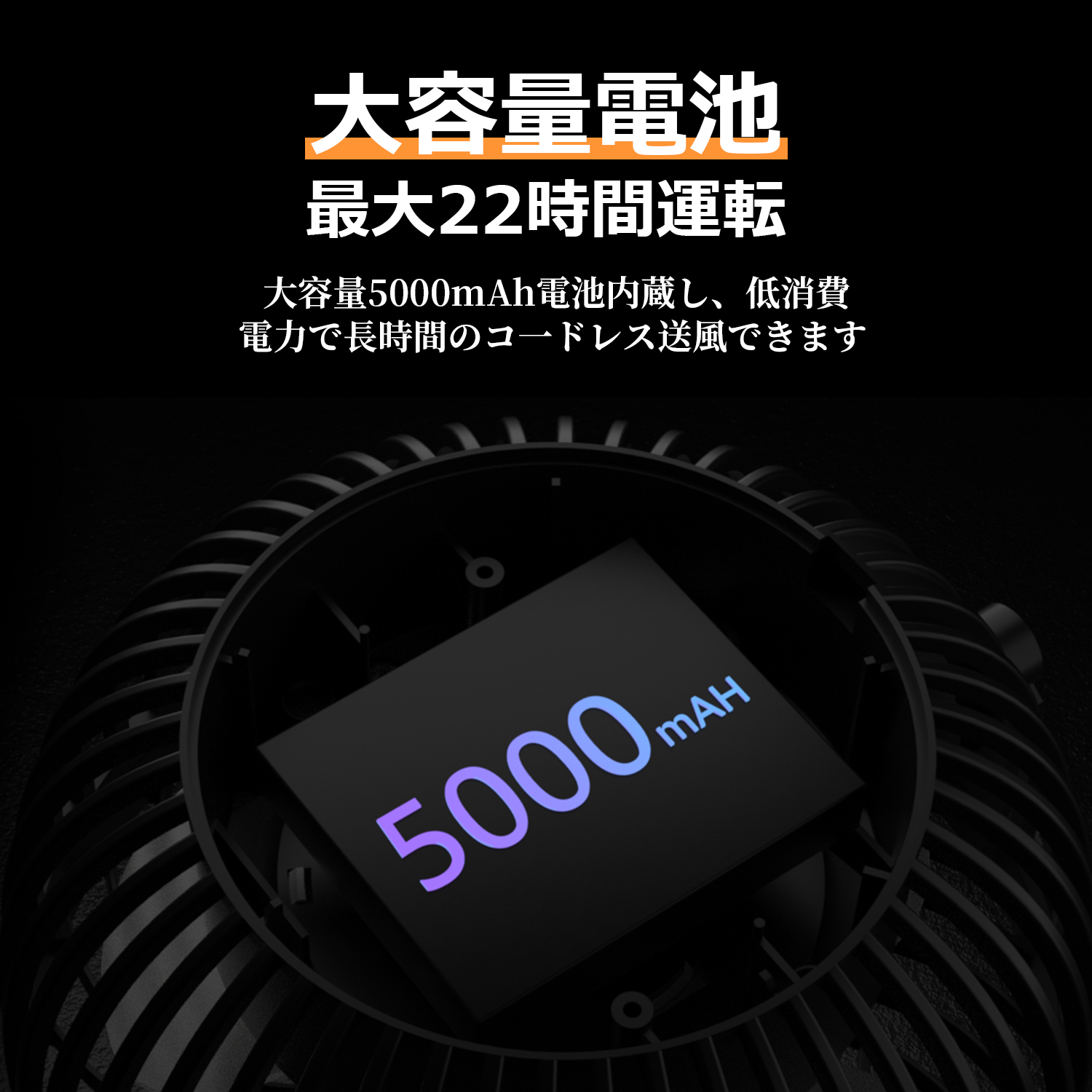 【5000mAh大容量&22時間連続運転&急速充電&リモコン付き】