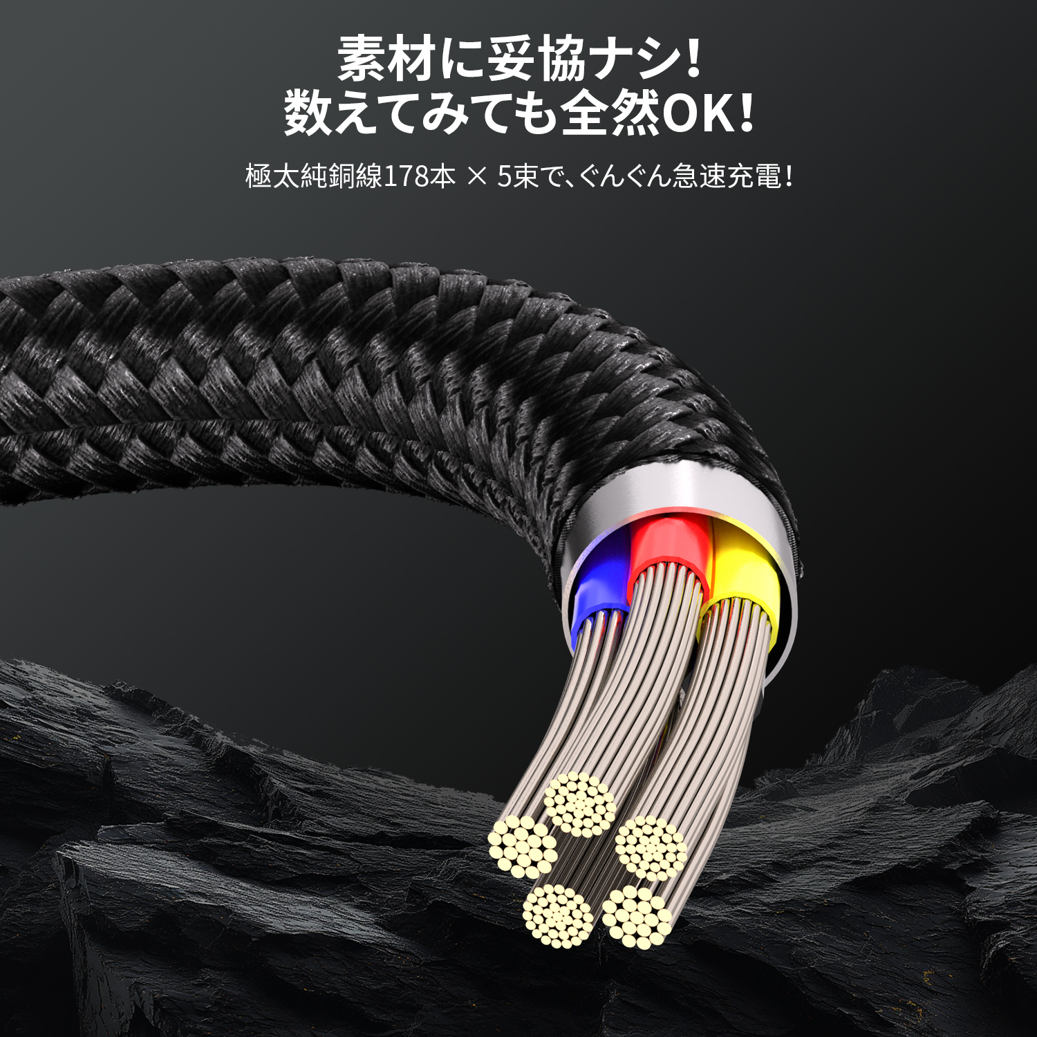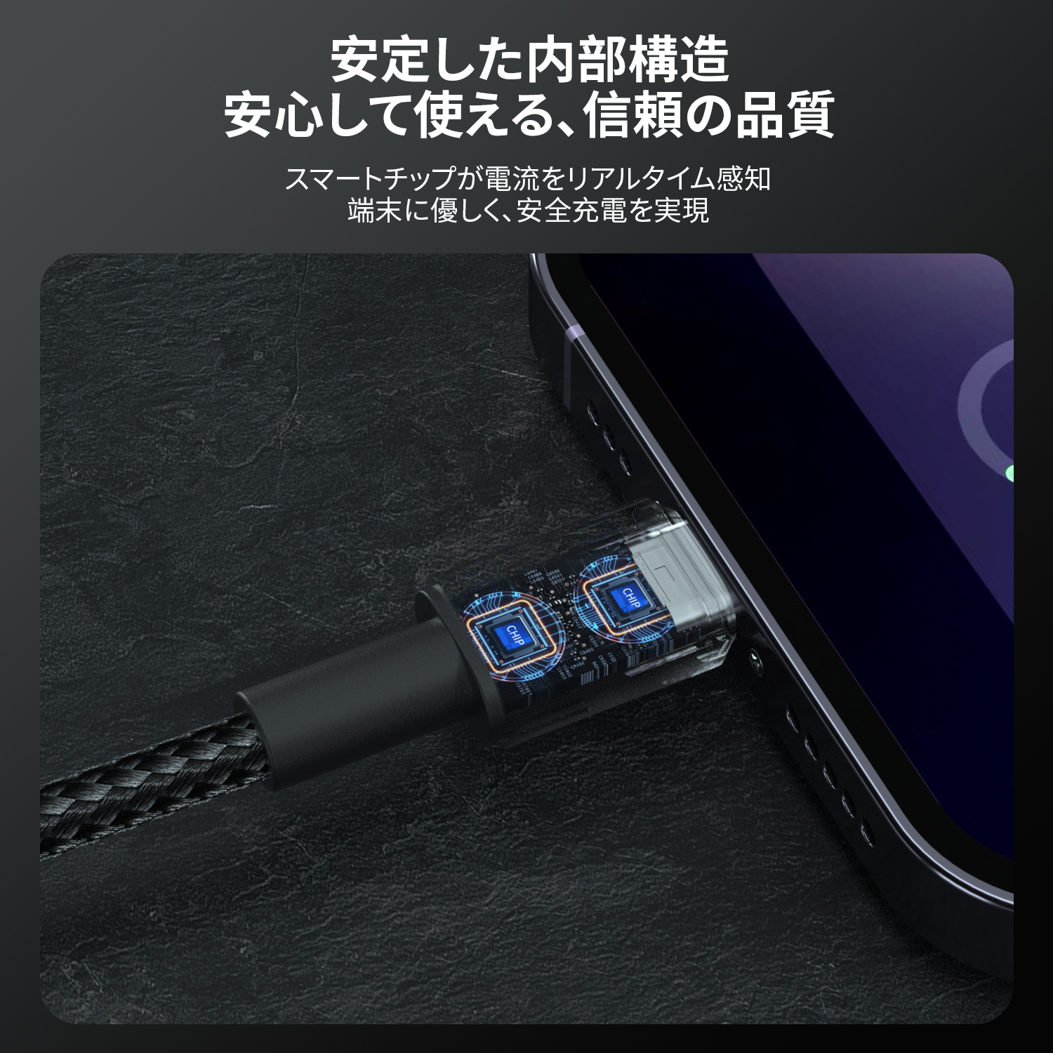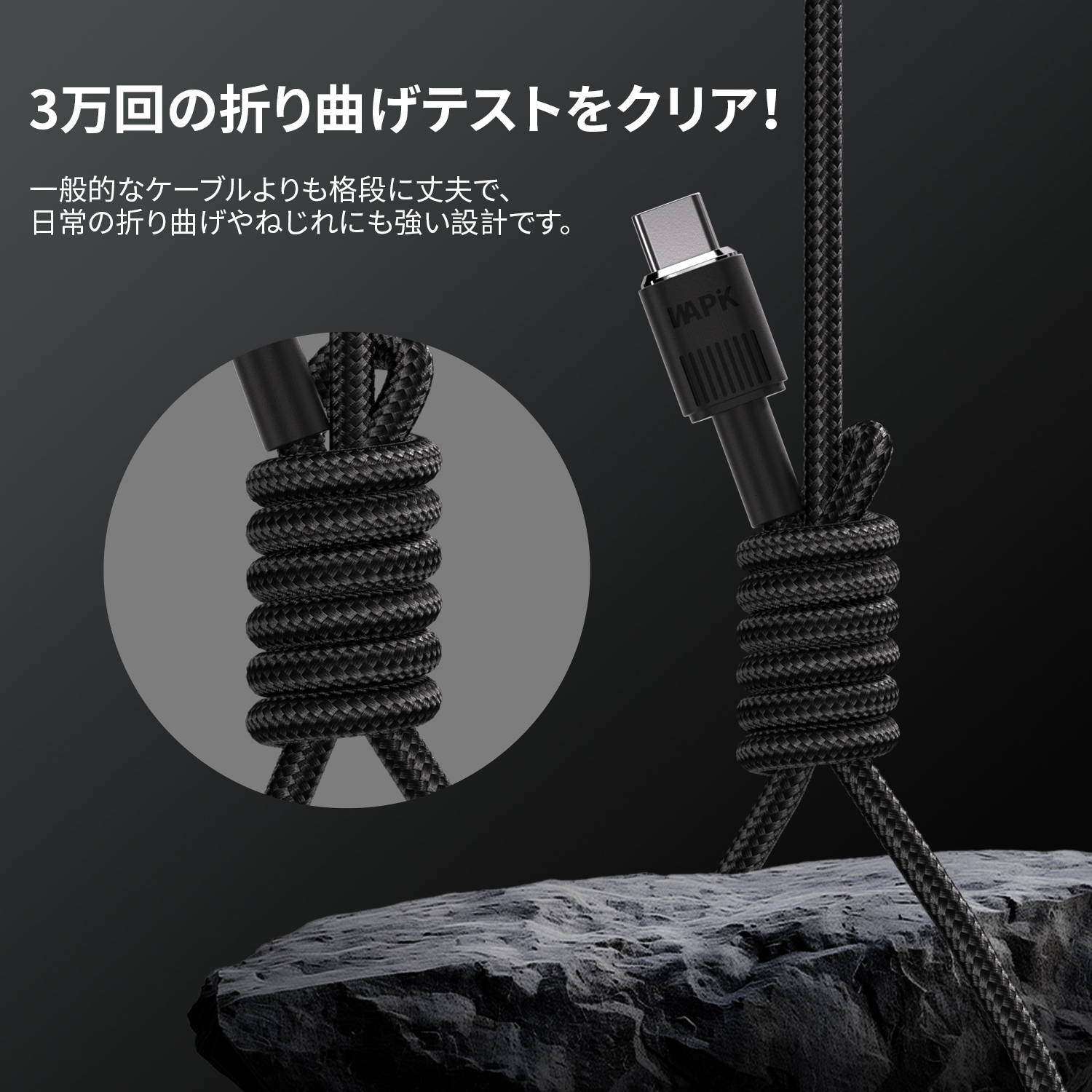 【優れた耐久性】約30000回の折り曲げにも耐える優れた耐久性を実現しているため、ケーブル内部のワイヤーを断線から保護し、安心して充電することができます。