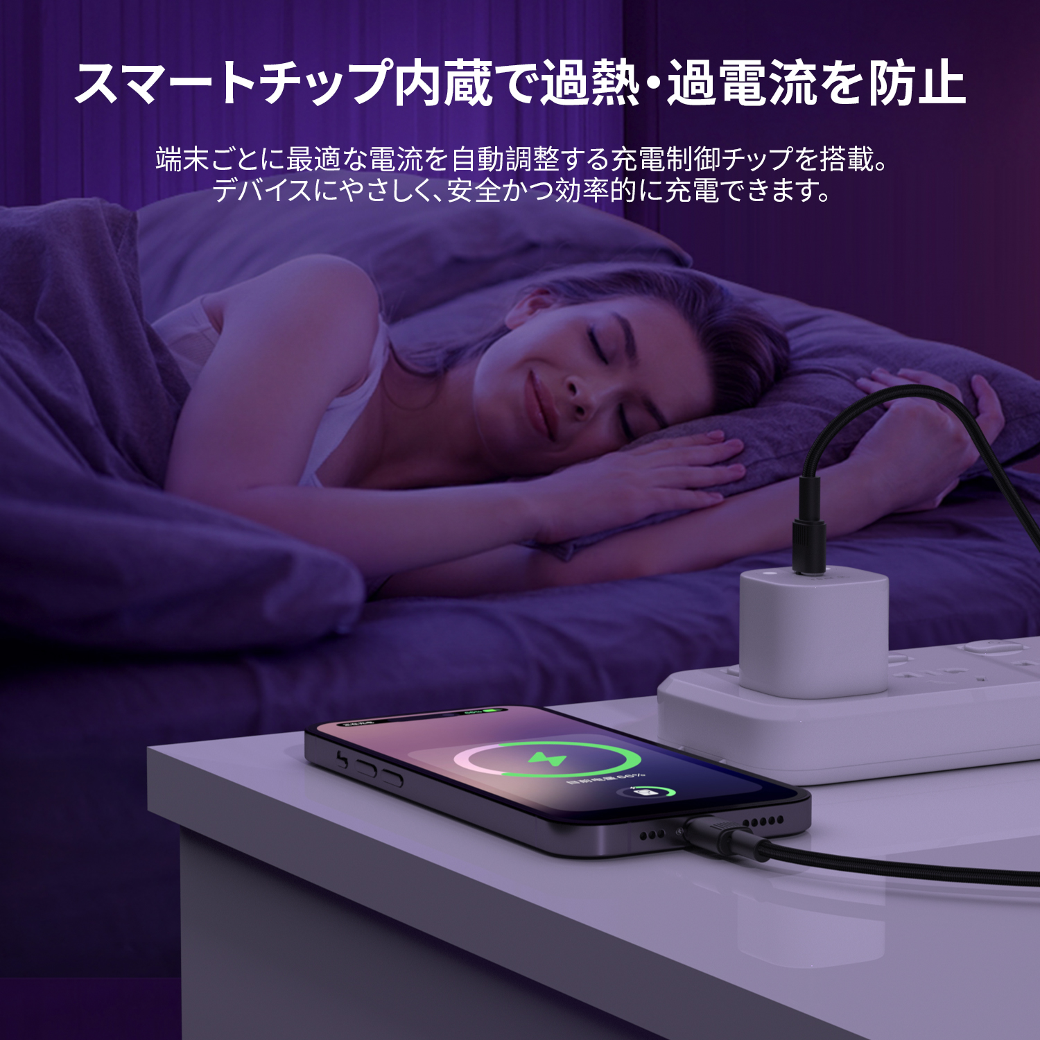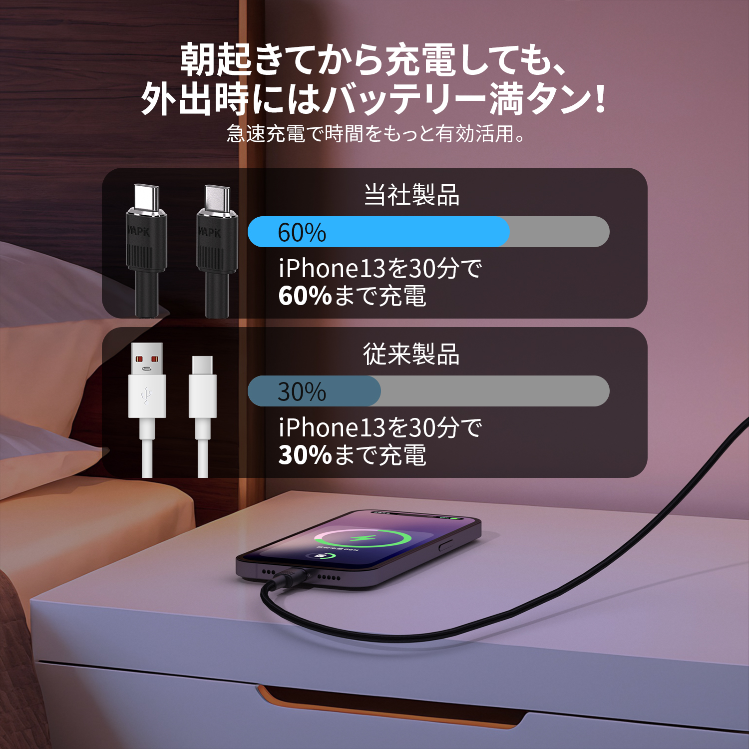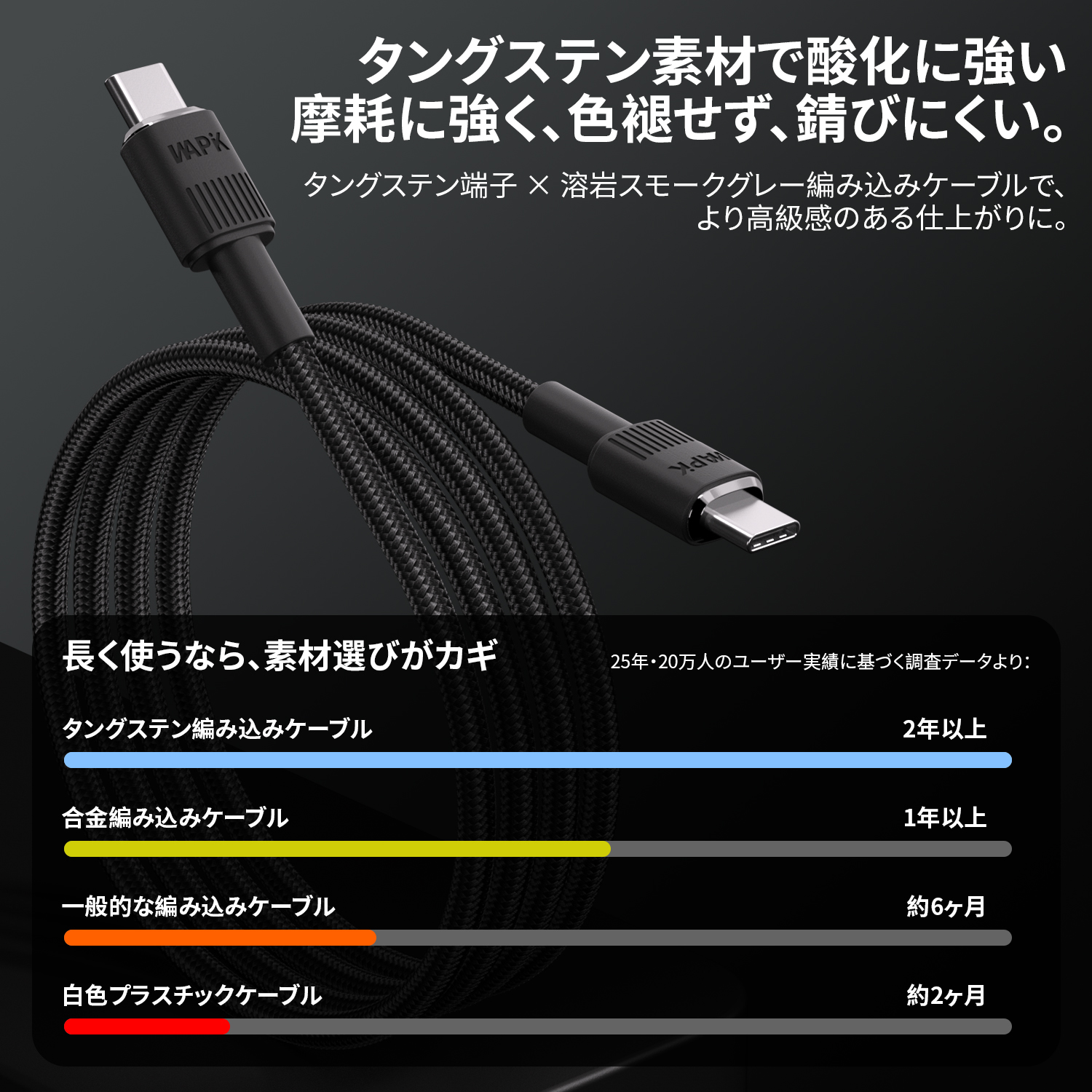【優れた耐久性】約30000回の折り曲げにも耐える優れた耐久性を実現しているため、ケーブル内部のワイヤーを断線から保護し、安心して充電することができます。