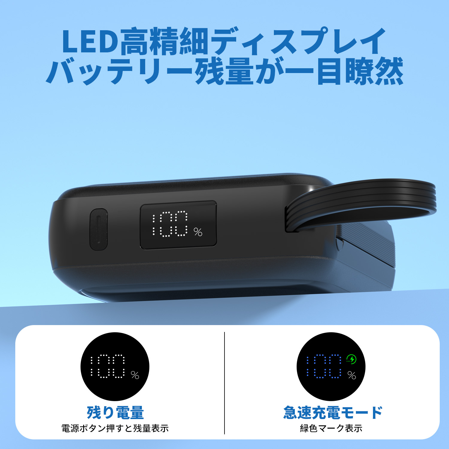 モバイルバッテリー スマホ充電器 大容量 防災電源 10000mAh 小型 急速充電器 PSE認証済 残量表示 携帯充電器 iPhone/iPad/Android対応