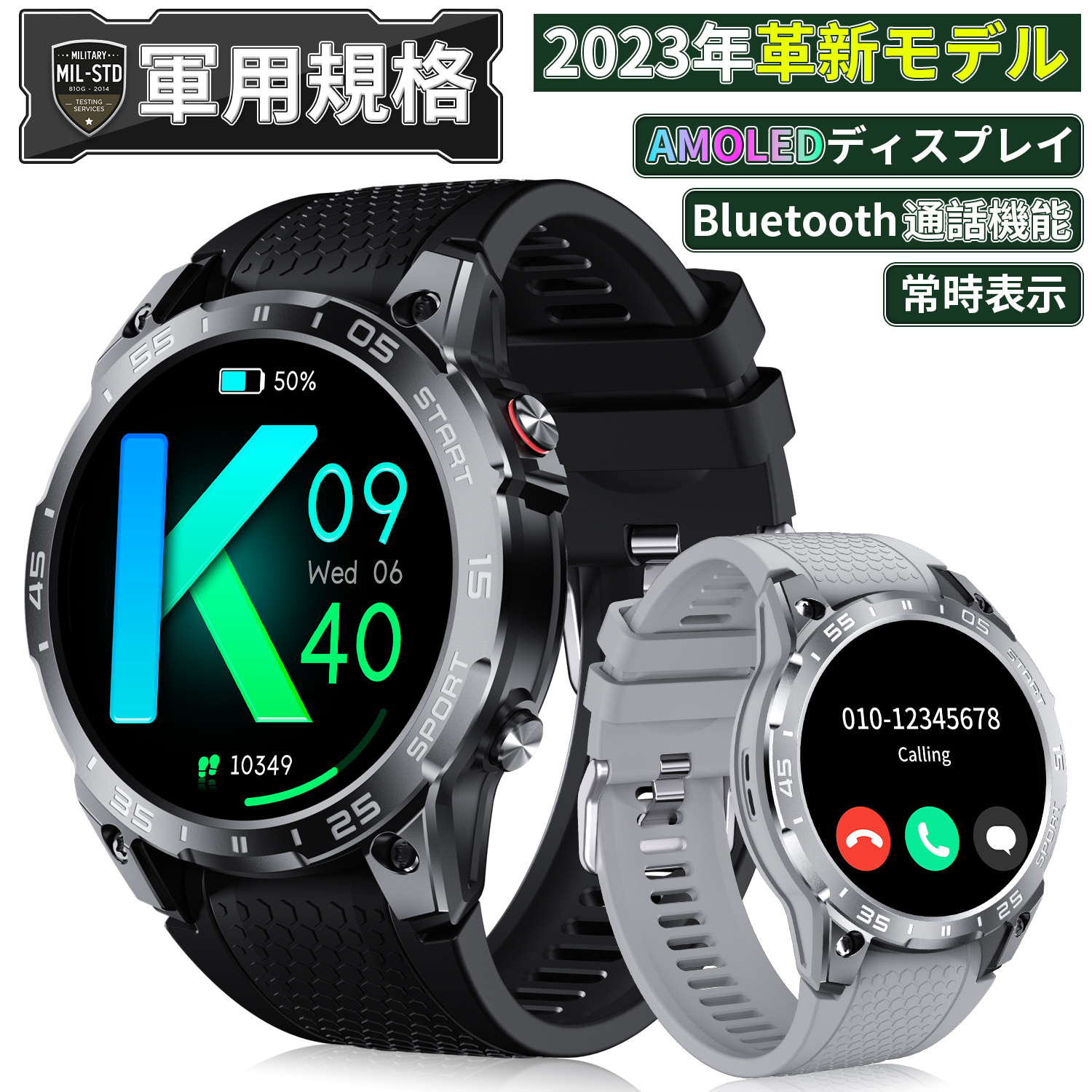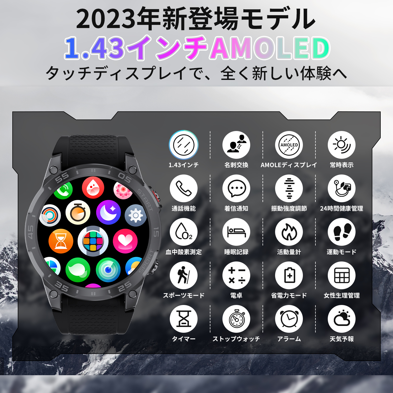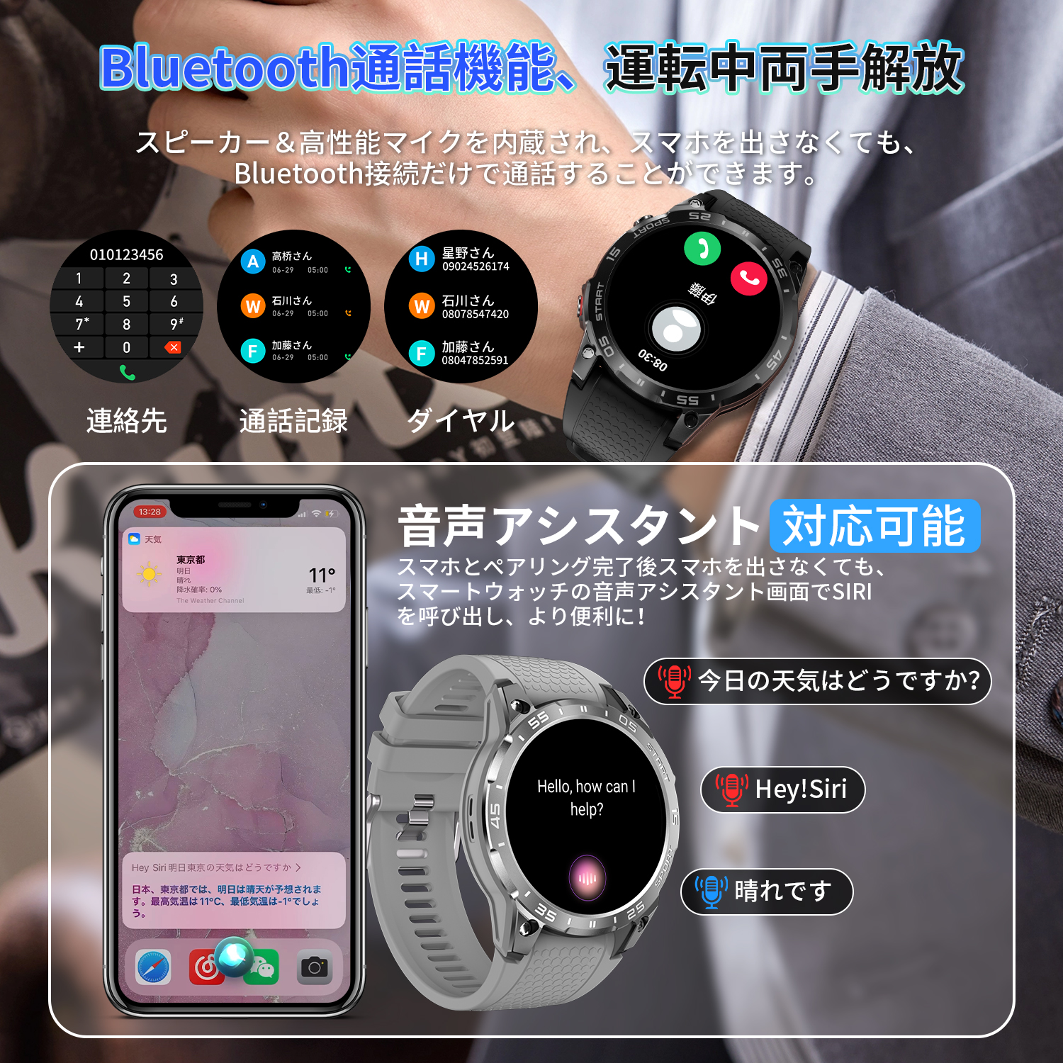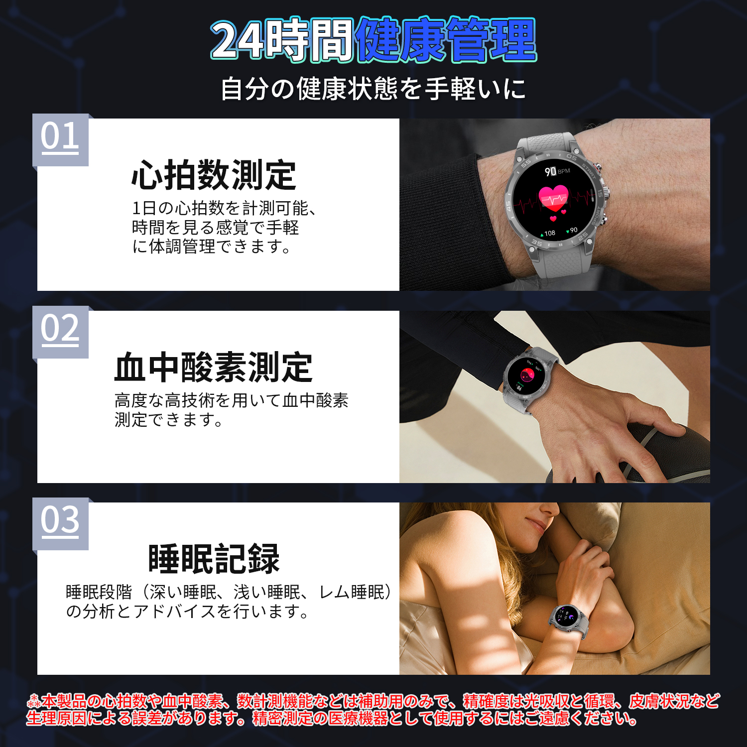 スマートウォッチ 丸型 常時表示 通話機能 健康管理 日本語説明書 着信通知 日本製センサー 2024新発売 プレゼント