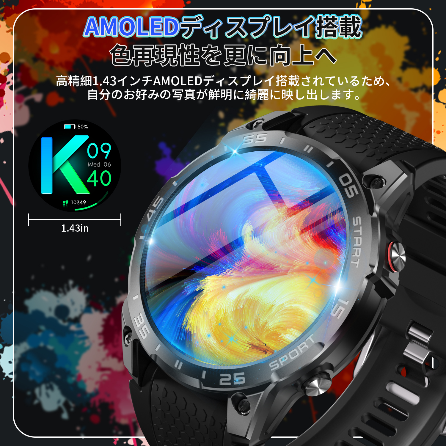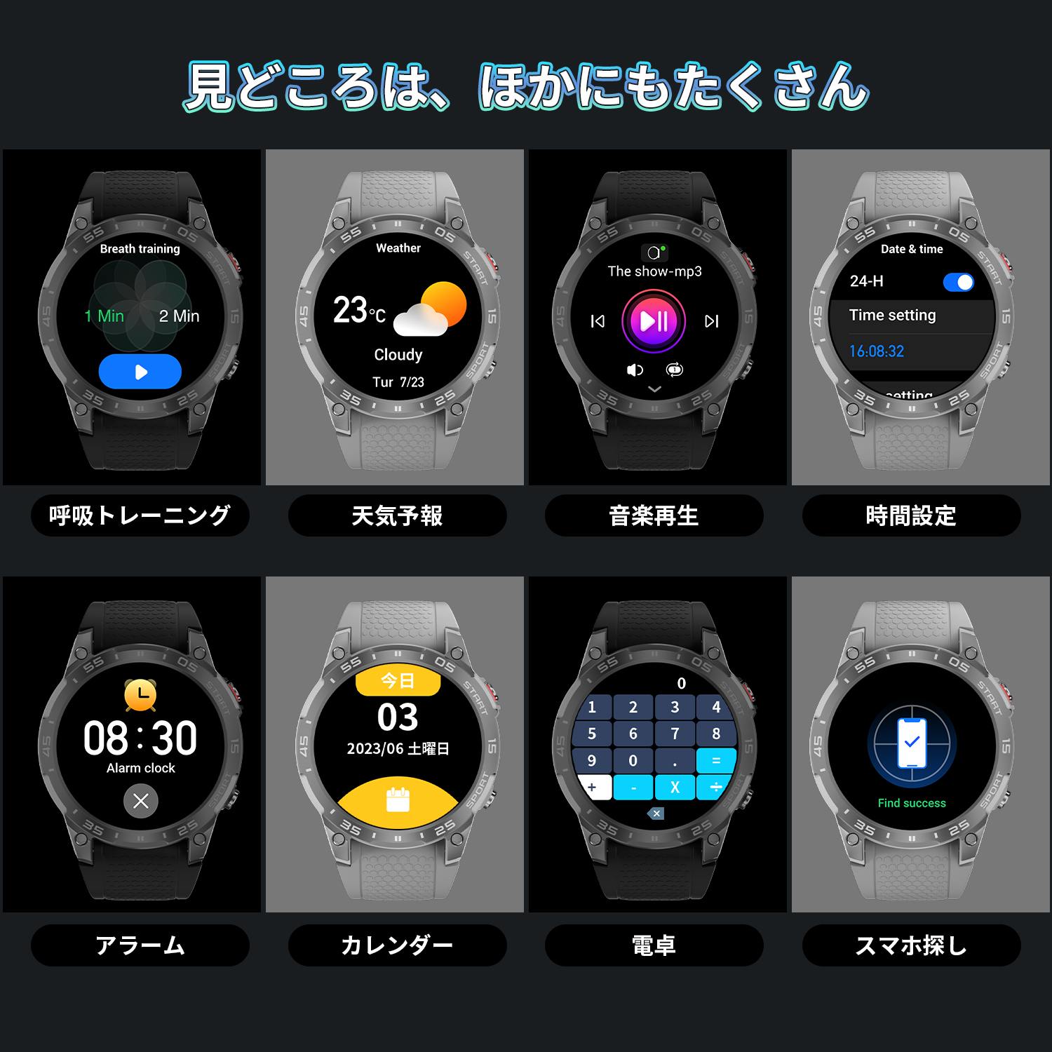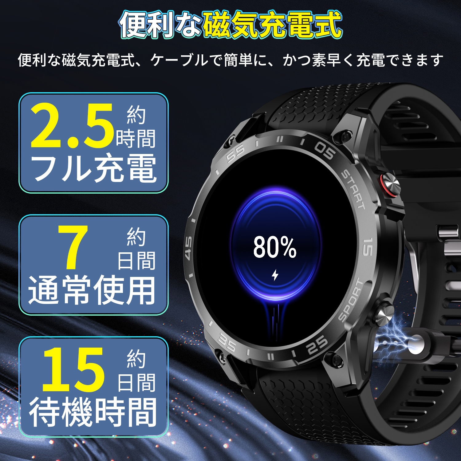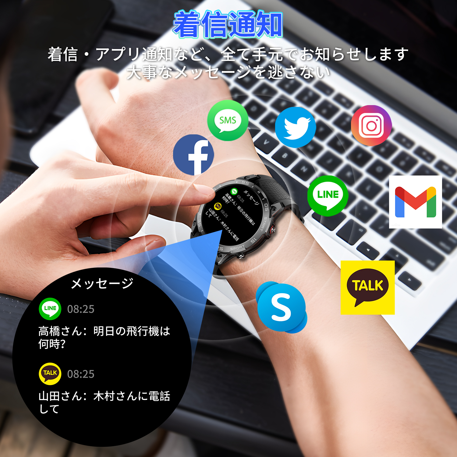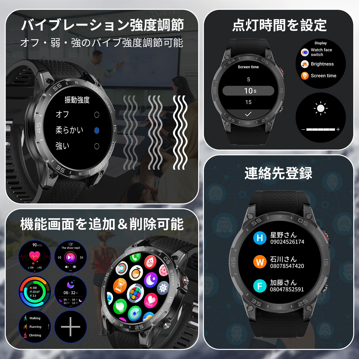 スマートウォッチ 丸型 常時表示 通話機能 健康管理 日本語説明書 着信通知 日本製センサー 2024新発売 プレゼント