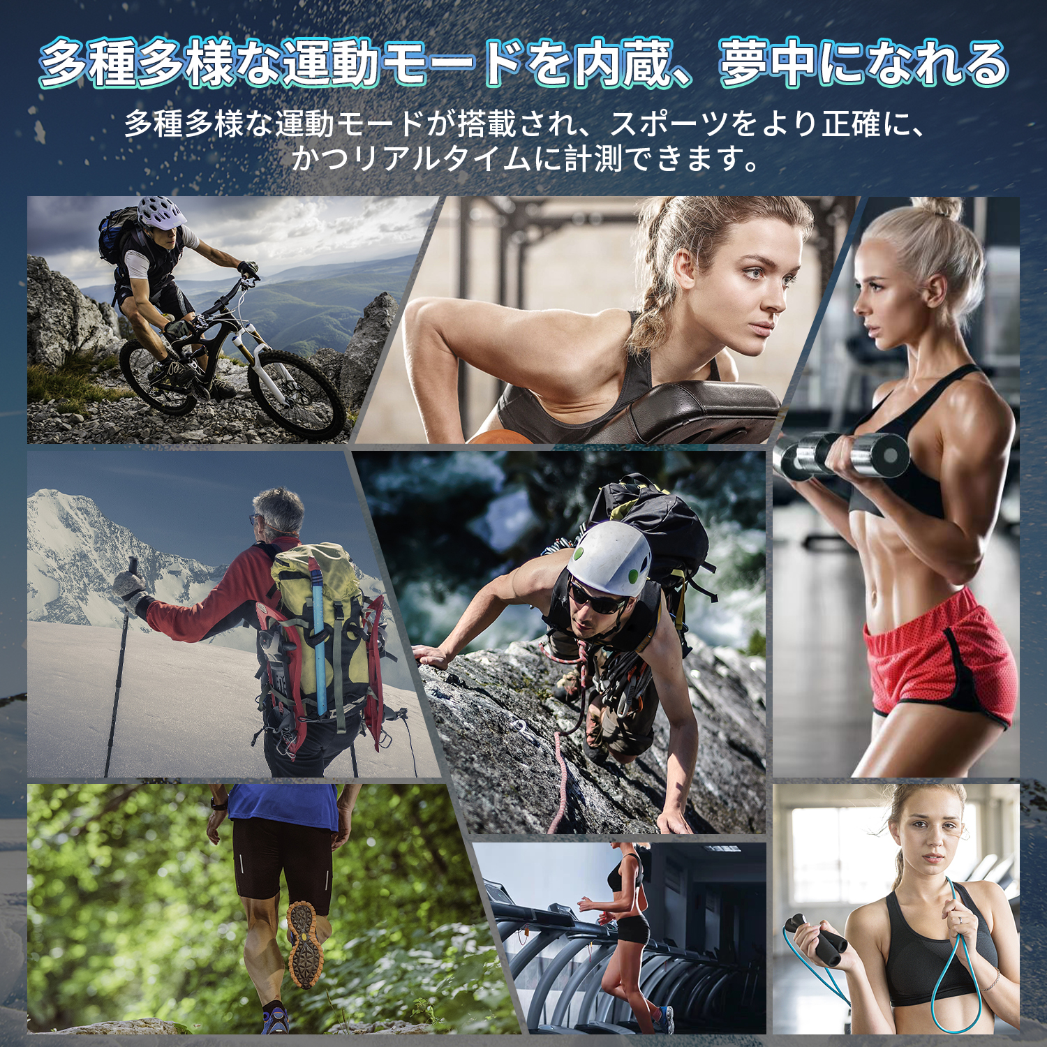 1.91ンチのIPSカラースクリーンは、より大きく高精度な大画面で通知や文字を表示されます。上下左右のスライド操作で機能の切替が可能になり、利便性を大幅向上しました。画面点灯時間(最大5分間の設定で表示可能)と輝度調整は可能となります。