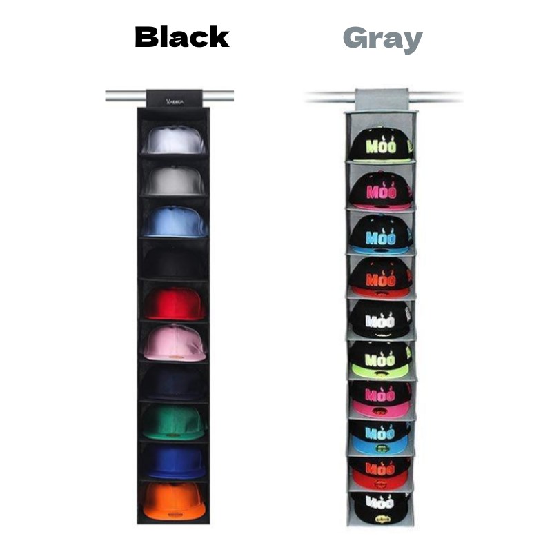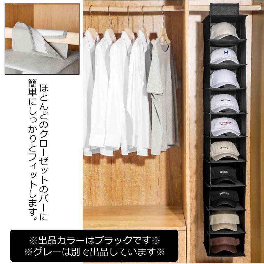 クローゼットの中で吊り下げ収納を行え。10段の広々とした収納空間を備えているので、たくさんのキャップを収納できます。
