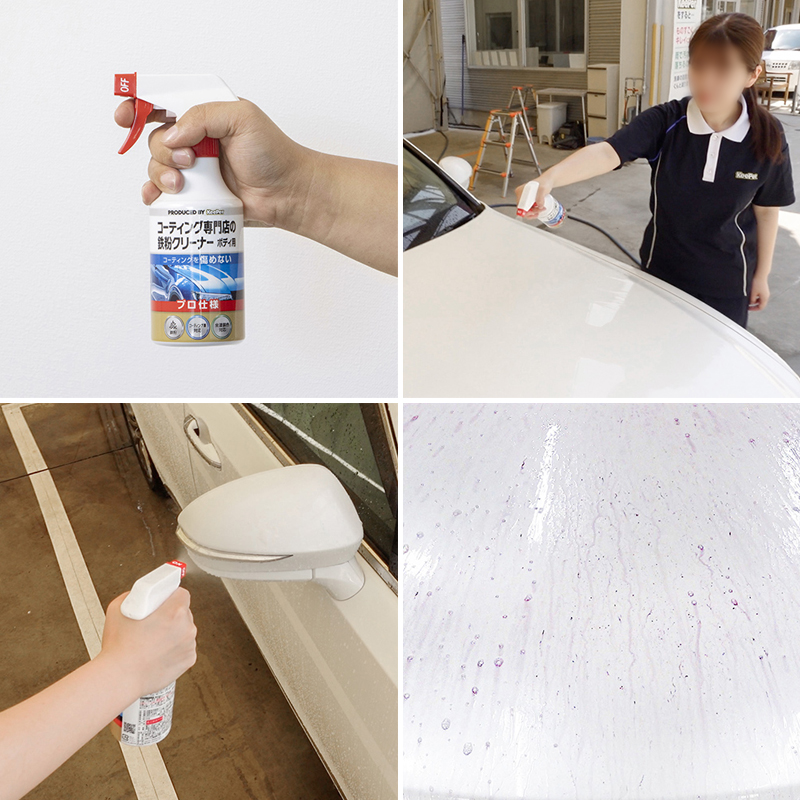 スプレーして水で流すだけ!イヤな鉄粉を強力洗浄。鉄粉(酸化鉄)だけに反応して落とす鉄粉除去剤。中性タイプなので、塗装面のコーティングを落とさない。全塗装色対応。