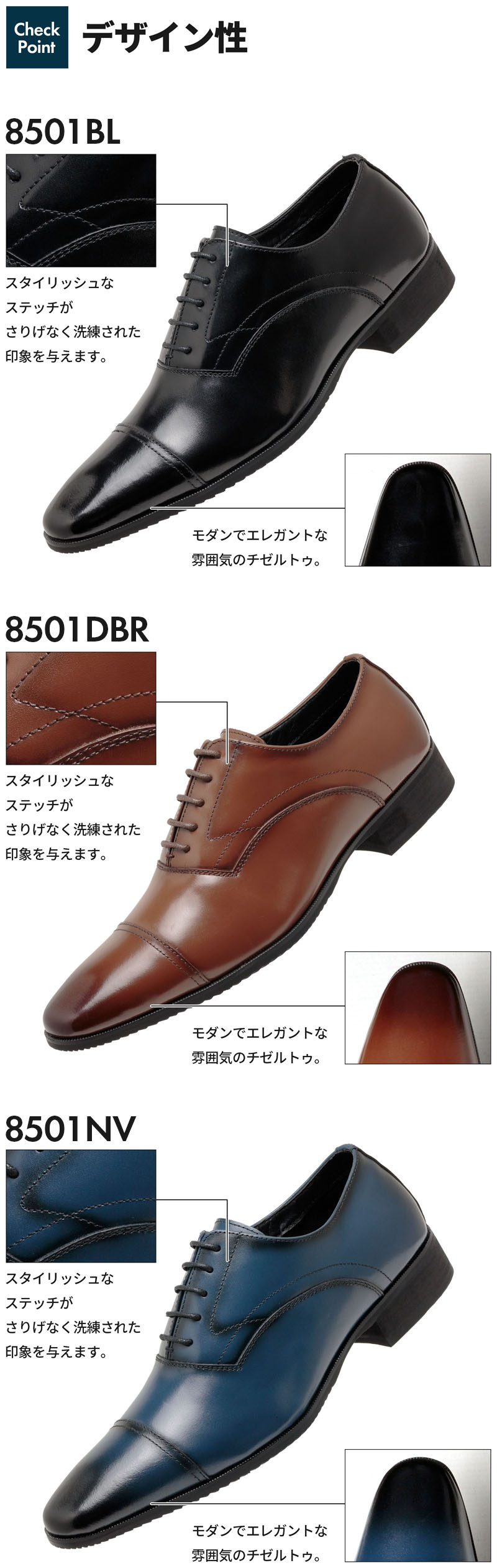 8501NV 紺 ストレートチップ
