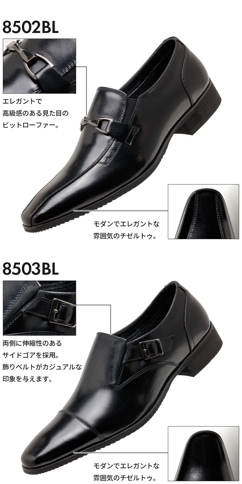 8501BL 黒 ストレートチップ