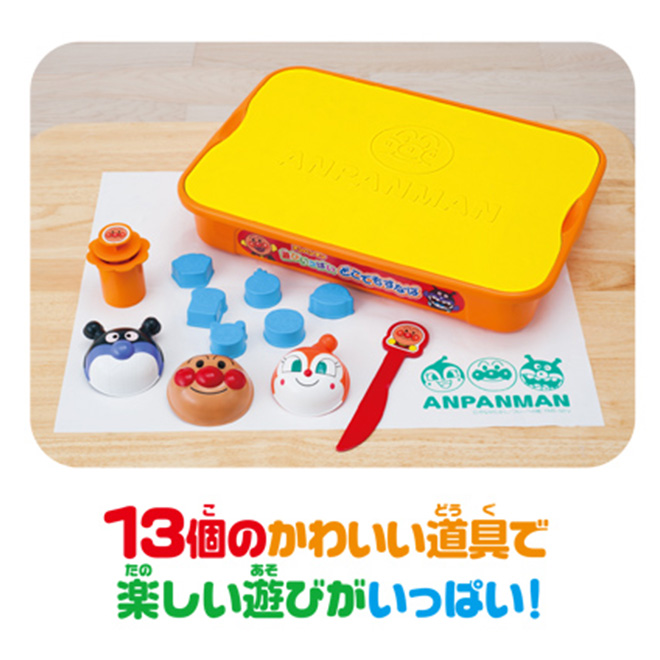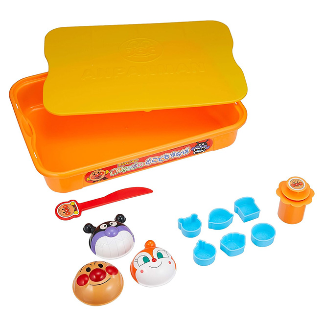 ■セット内容 : ケース×1、フタ×1、砂型(大)×3(アンパンマン・ばいきんまん・ドキンちゃん)、砂型(小)×6、サンドナイフ×1、押し出し器×1、プレイシート×1