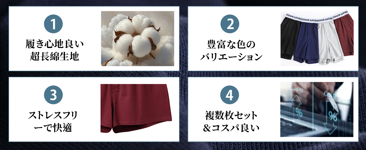 [厳選生地] やわらかな伸縮性に優れたニット生地のトランクス、肌ざわりが滑らか。通気性 吸汗性 速乾性にも抜群、異臭なし 色褪せにくいなどのポイントもあります。