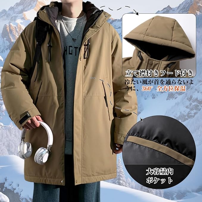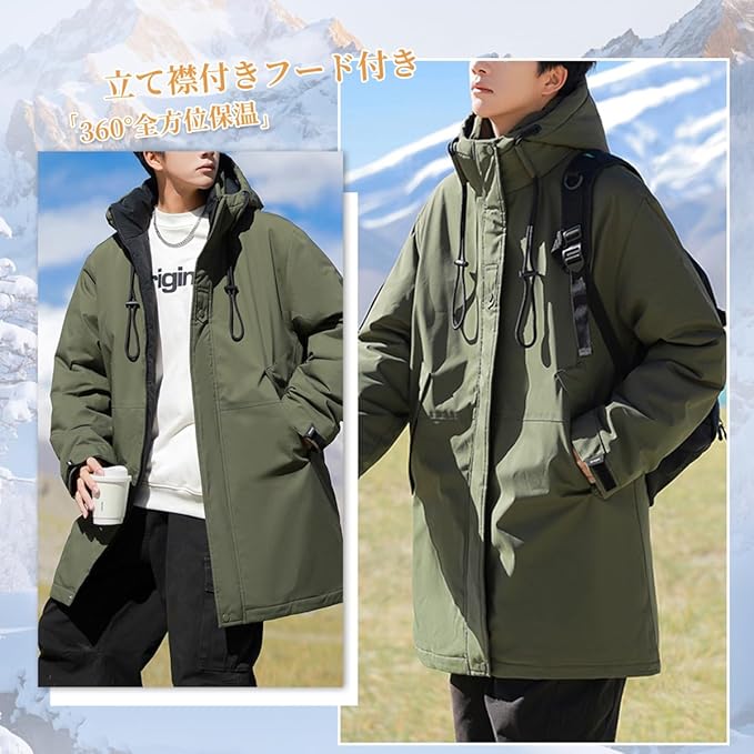 【6880円→5380円年末感謝祭】ダウンコート メンズ ダウンジャケット ロングコート 中綿ジャケット 防寒 冬 秋 厚手 作業着 暖かい カジュアル 通学 通勤 LHT
