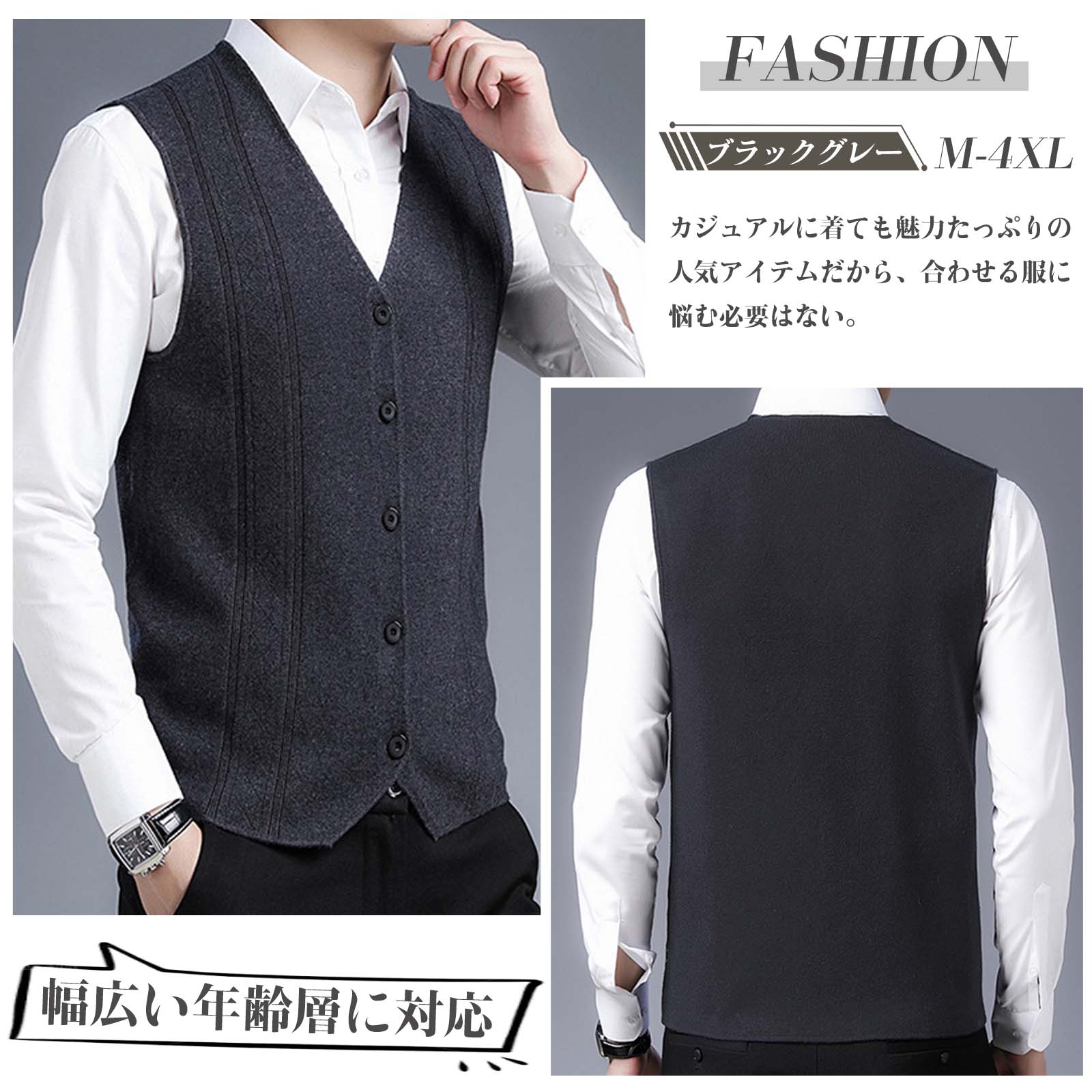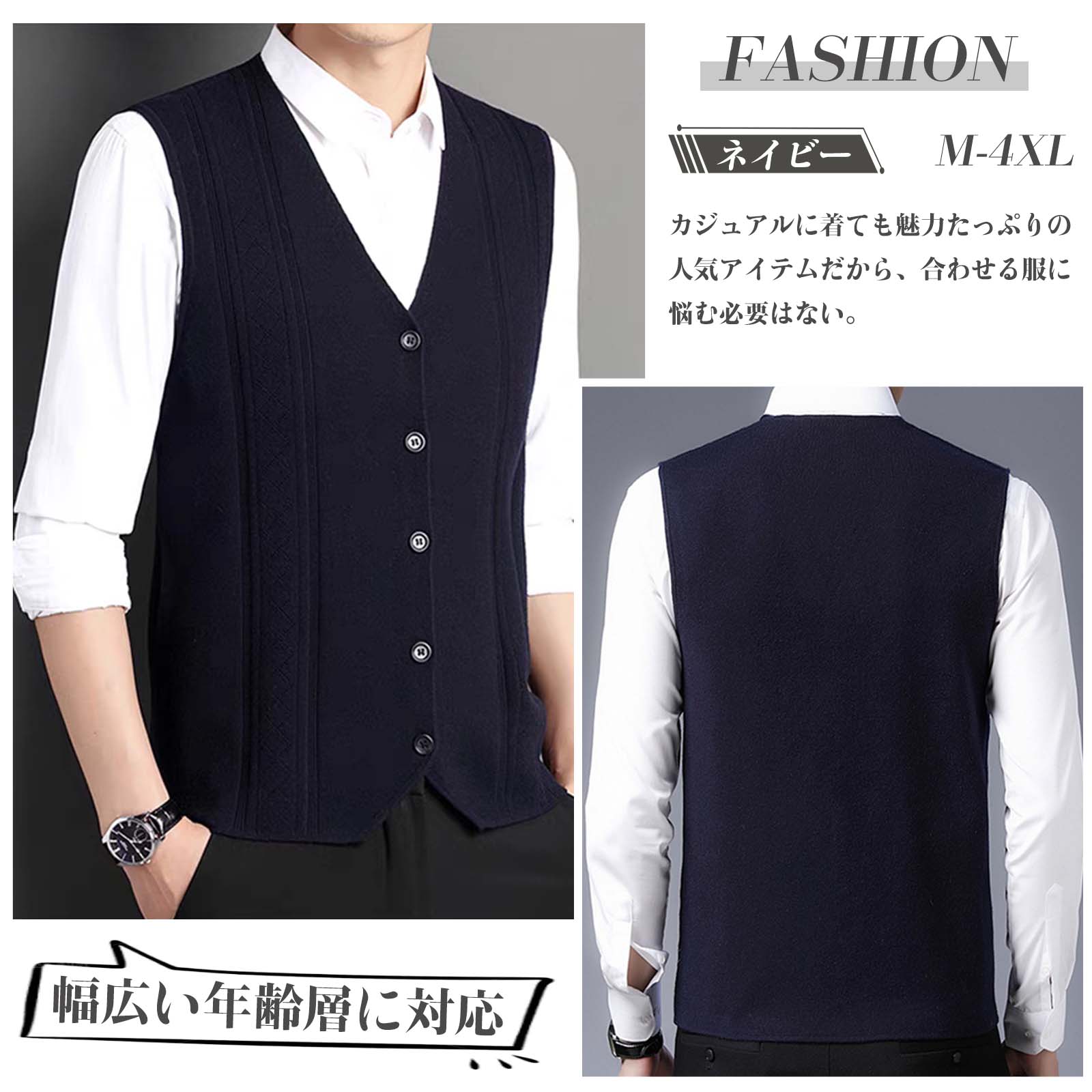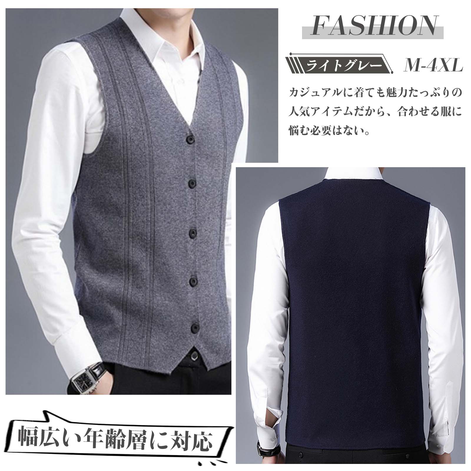 ニットベスト メンズ 前開き ベスト Vネック カーディガンベスト 無地 セーターベスト ビジネス カジュアル LHT