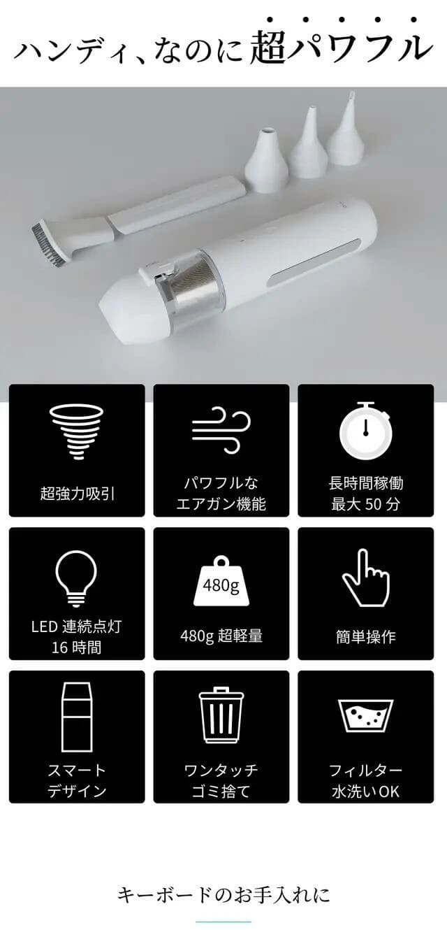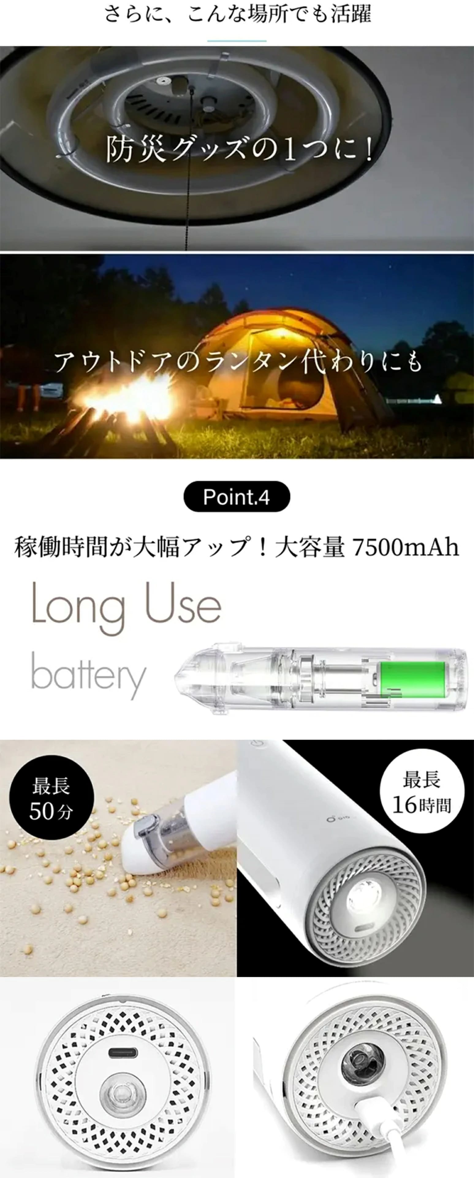 最長50分の長時間稼働(LEDライト連続点灯最長16時間)を実現しました。