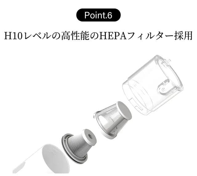 エアフィルターには、微粉塵をろ過できるH10レベルのHEPAフィルターを採用。