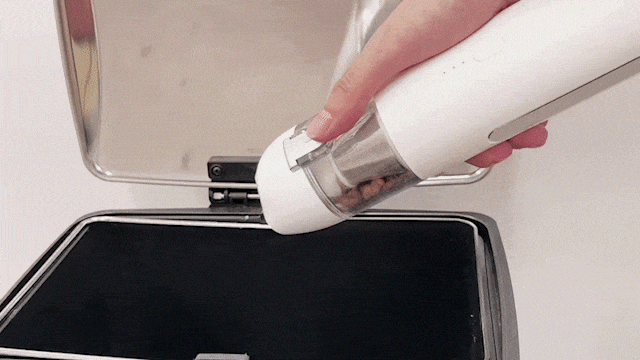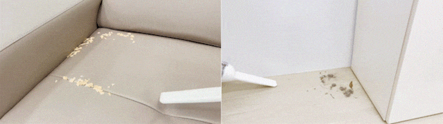 吸引ノズルが届かない場所は、エアガン機能で一掃。