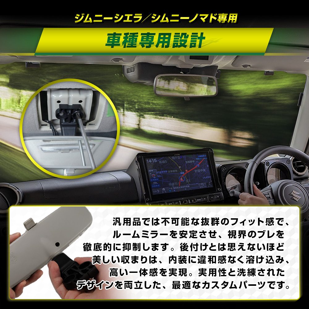 ジムニーシエラ ジムニーノマド JB74 JC74 ルームミラーショートステー 位置アップで広がる視界 上げる フロント スッキリ シェアスタイル 爆買