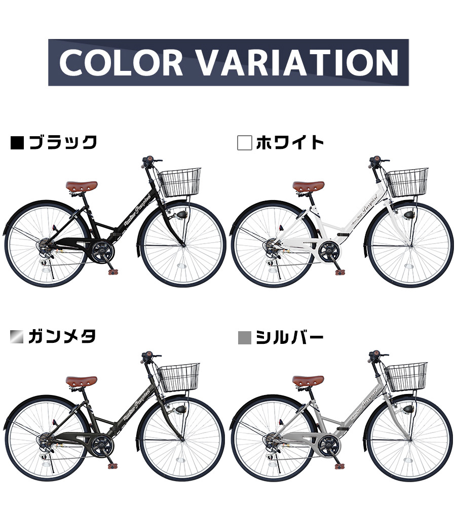 ノーパンク シティサイクル 折りたたみ自転車 26インチ シマノ6段ギア かっこいい おしゃれ 自転車 ママチャリ カゴ 電池式LEDライト付き [TS26B-np]