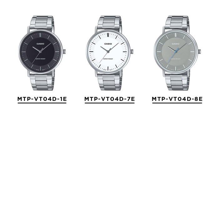 | ■ カラー ■ MTP-VT04D-1E ケース:シルバー 文字盤:ブラック ベルト:シルバー MTP-VT04D-7E ケース:シルバー 文字盤:ホワイト ベルト:シルバー MTP-VT04D-8E ケース:シルバー 文字盤:グレー ベルト:シルバー →他のカラーはコチラ | |