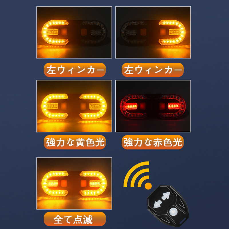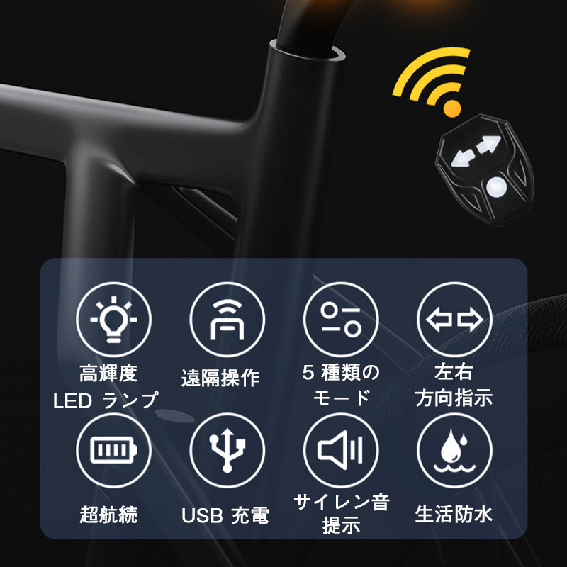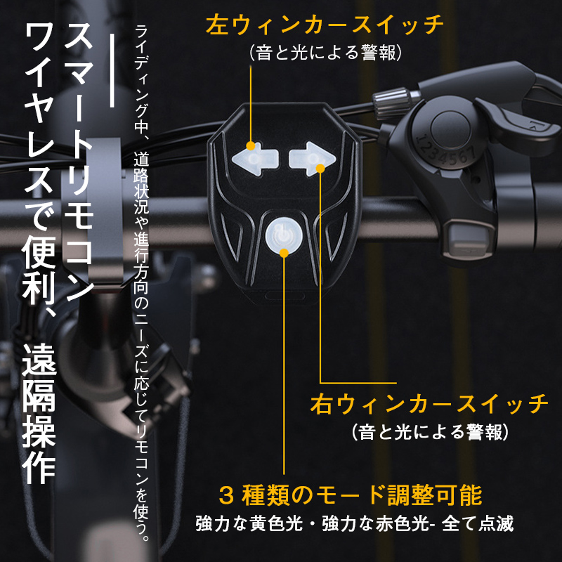 自転車用のリモコン式方向指示テールライト、リモコン操作で簡単に方向を示せるから、走行中も安心。