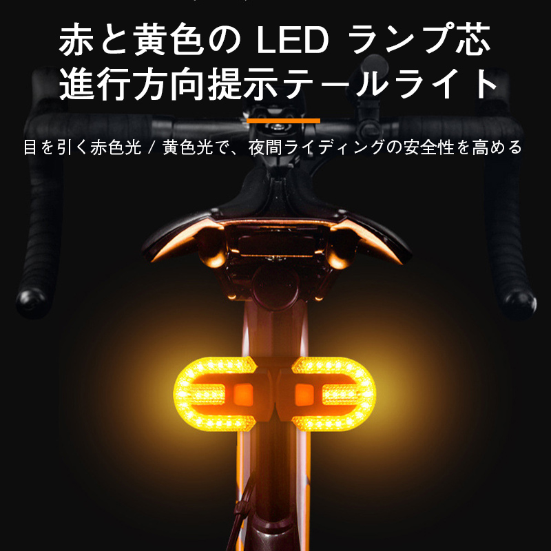 自転車 テールライト 点灯 消灯 ブレーキ警告 LED 明るい 輝度調整 USB Type-C 充電 防水 サドル シート左右方向指示 安全確保