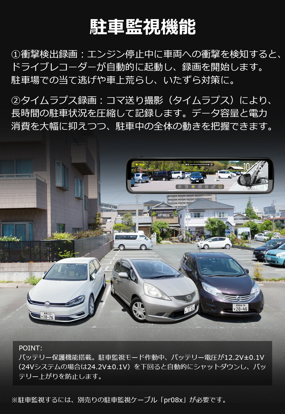 ※駐車監視機能のご利用には、駐車監視ケーブル(pr08x)をご購入必要です。