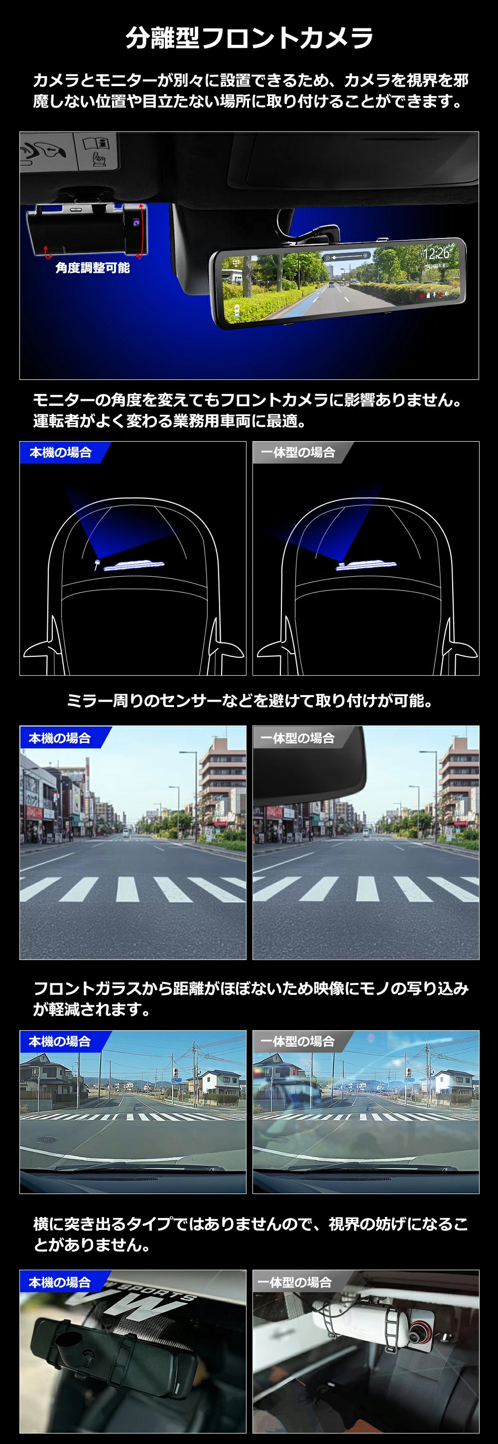 ●セパレート式・分離型フロントデュアルカメラ
